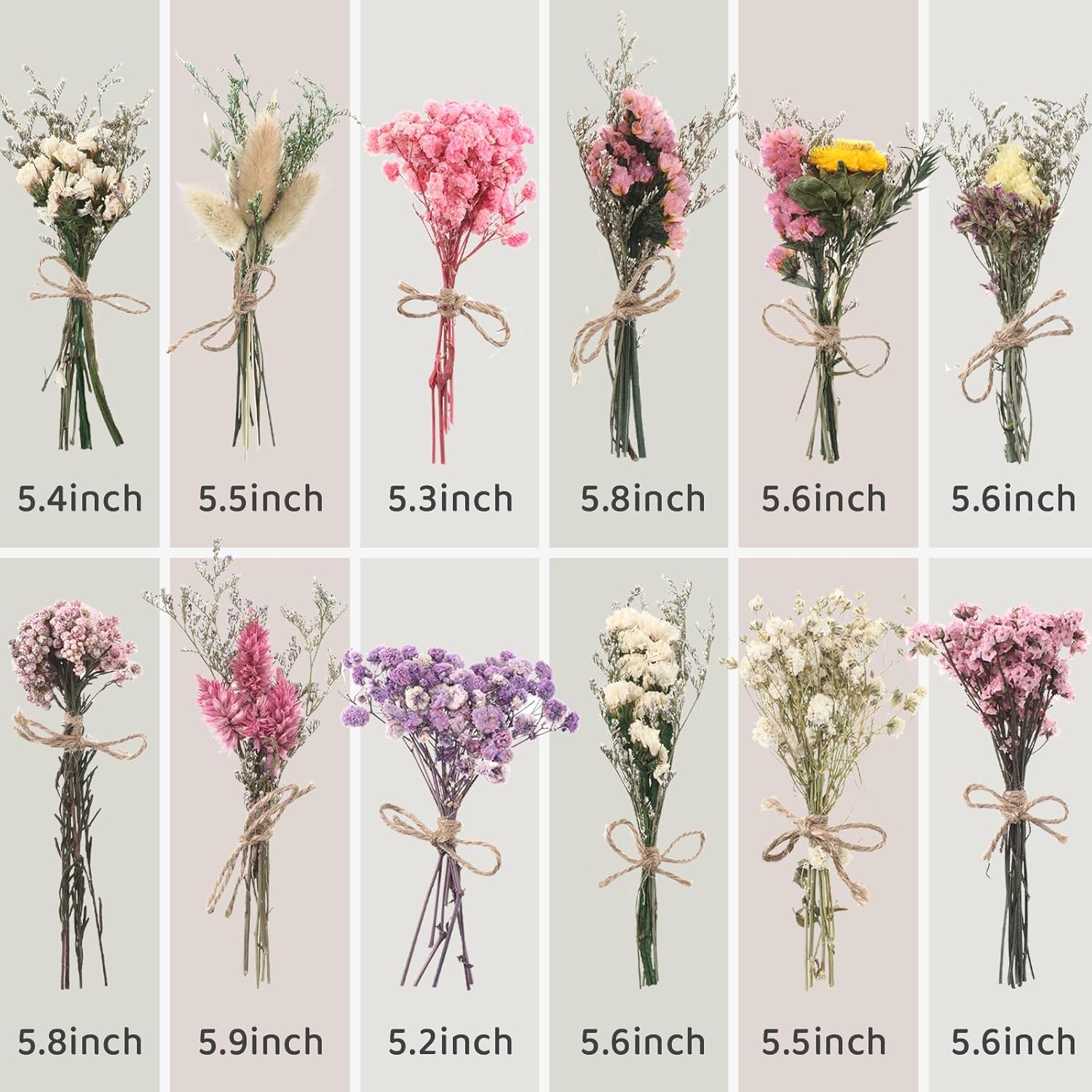 • Small and delicate: The bouquet is 5.3-5.9 inches (13-15 cm) long and delicate and lovely. The stems are firm and fit easily into vases. Compared with fresh flowers, dried flowers have a longer shelf life and are not easily wilted. Whether it is used for DIY handicrafts or packaged into mini bouquets, it can bring a lasting natural atmosphere to weddings, homes and other Spaces