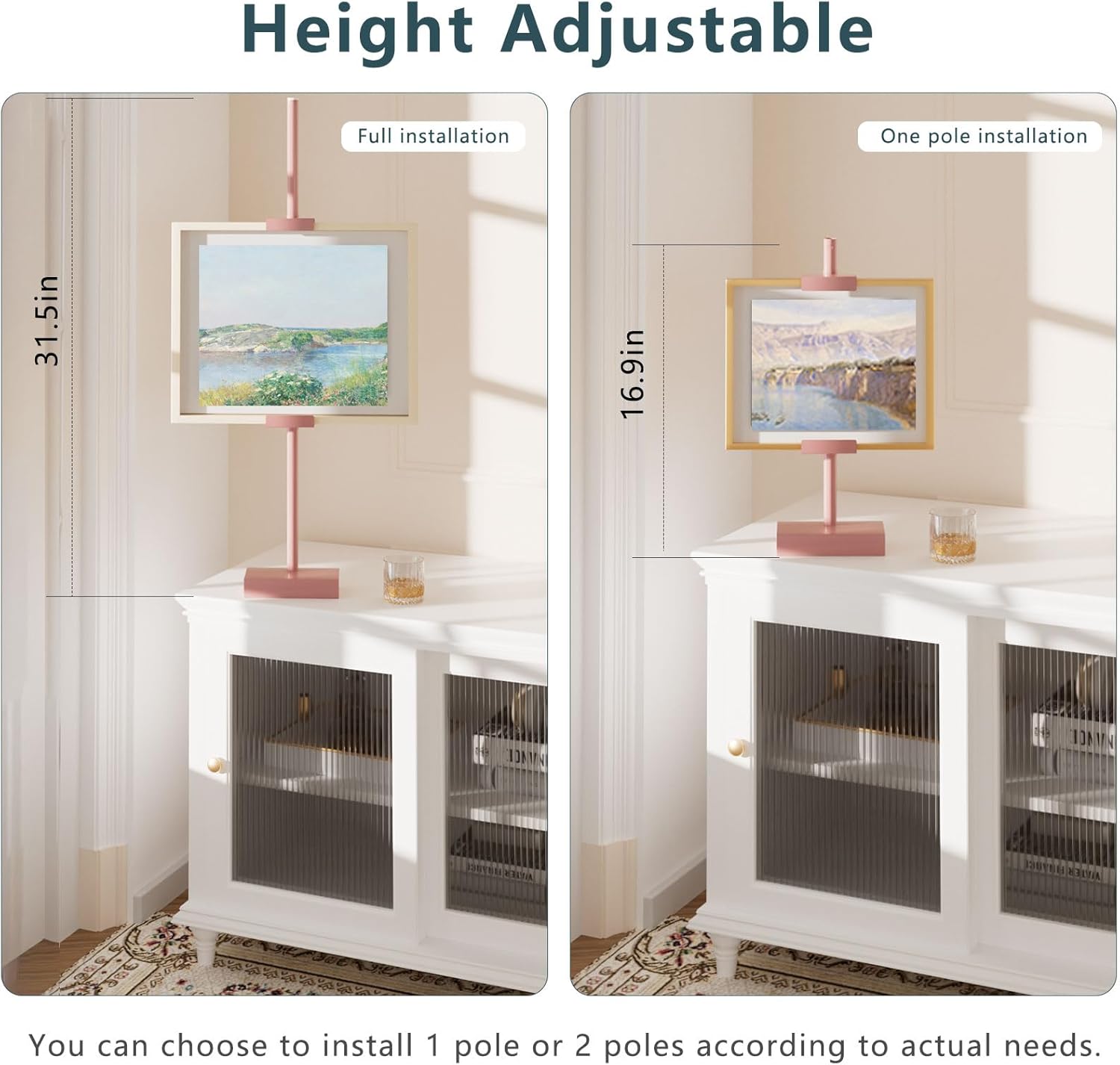 • ADJUSTABLE: Experience the ultimate flexibility in showcasing your artwork and memories with our adjustable art display stand for table. Freely adjustable height to fit your frame(up to 29.5"H, 1.5"D). Note: Please do not overtighten while adjusting to avoid damaging the coating.