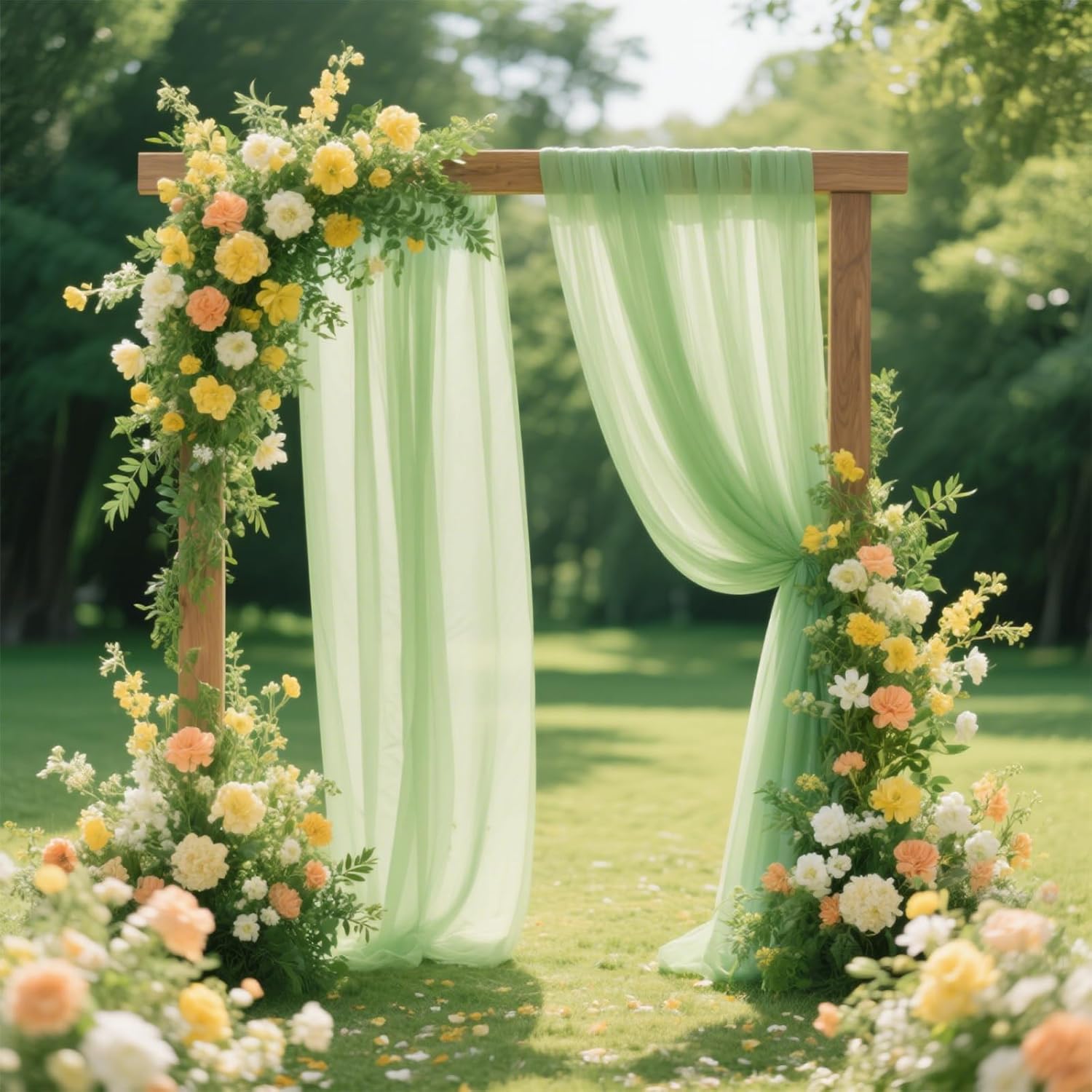 VOK Sage Green Wedding Arch Draping Fabric 29in x 18Ft 4 Panels Sheer Chiffon Curtain Drapes Extra Long for Outdoor Wedding Ceremony Birthday Party Decoration