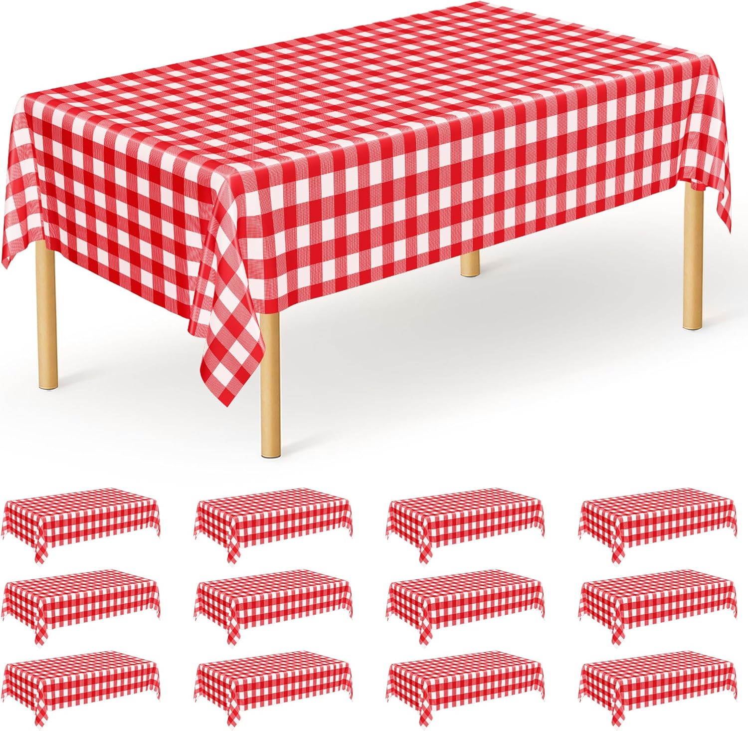 • What's Inside: Our disposable table cover comes in a pack of 12, featuring vibrant red and white checkered patterns. Perfect for both indoor and outdoor gatherings, these tablecloths create an inviting atmosphere that ensures your event is memorable