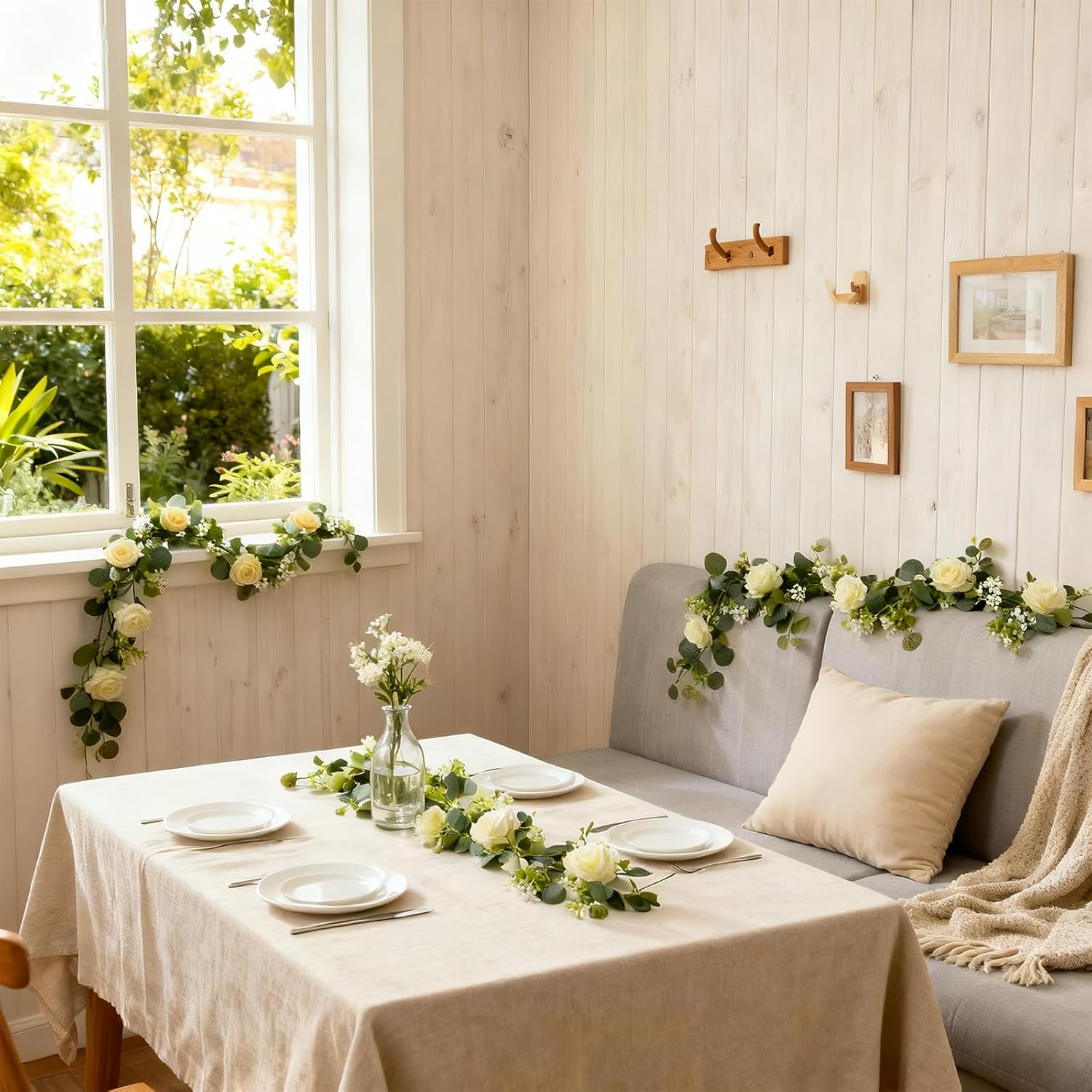 • Upgraded Fuller Wreath: Each pack contains 2 artificial rose garlands, each measuring 5.9 feet in length with 6 white roses. Each rose is approximately 4 inches wide. Enhance the fullness and realism of the rose heads with our meticulously crafted white floral garland, adding a touch of natural beauty to your life.
