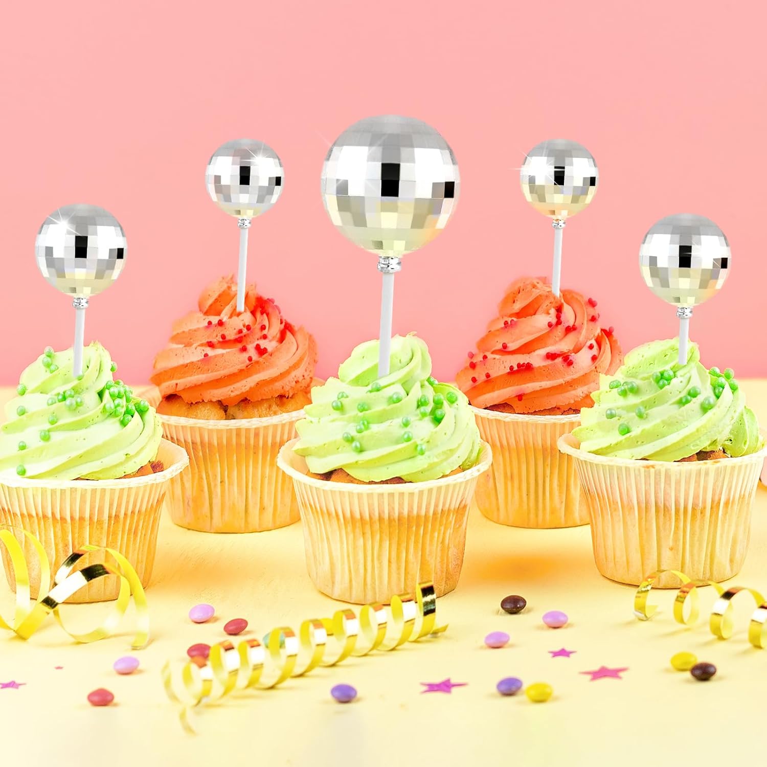 • Material: these disco ball decorations for cake are made of palstic. Safe to decorate food at room temperature, such as cake or dessert decorating use, or cupcakes, fruits, cheese and any dish and appetizer you want to decorate.