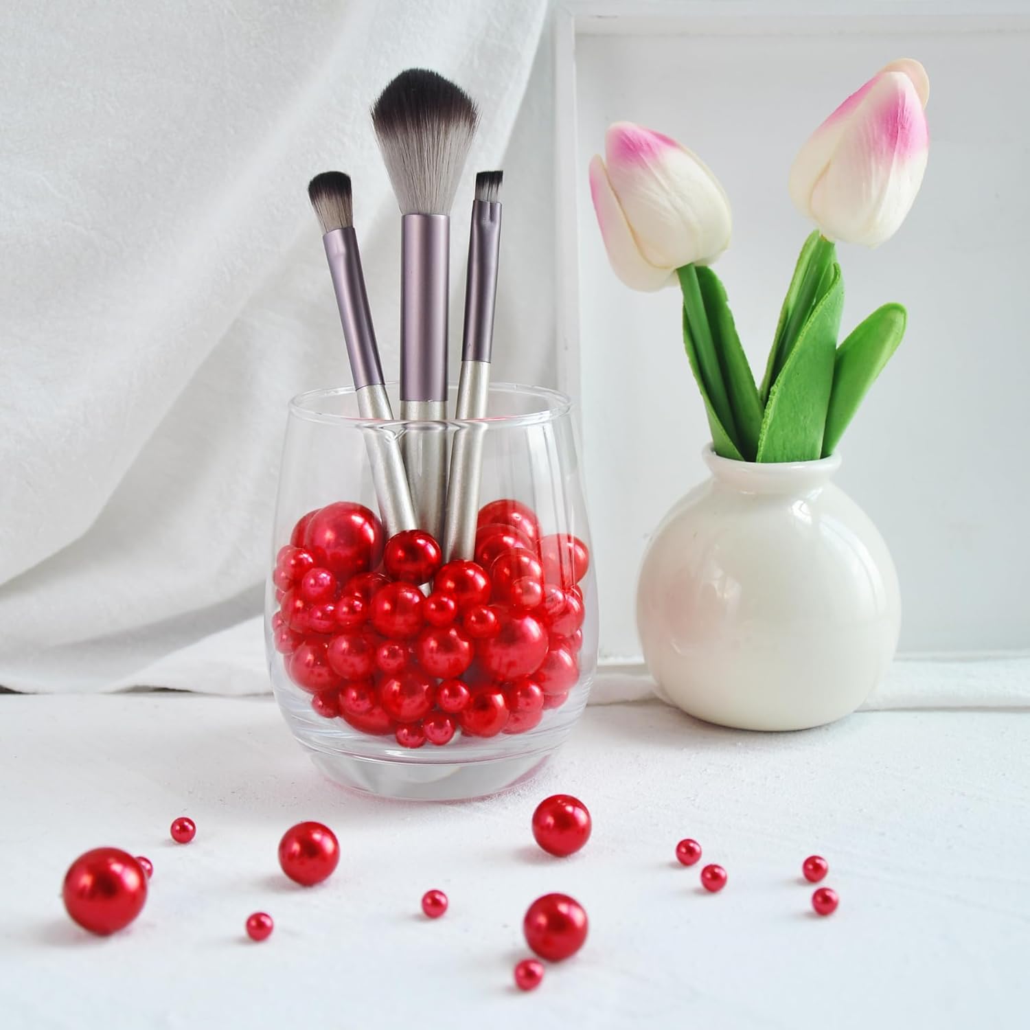 • Multi-Size Pearl Beads - Includes 520pcs metallic Red pearl beads in three versatile sizes (6mm, 14mm, 18mm) for dynamic layering and a luxurious effect in vases or bowls