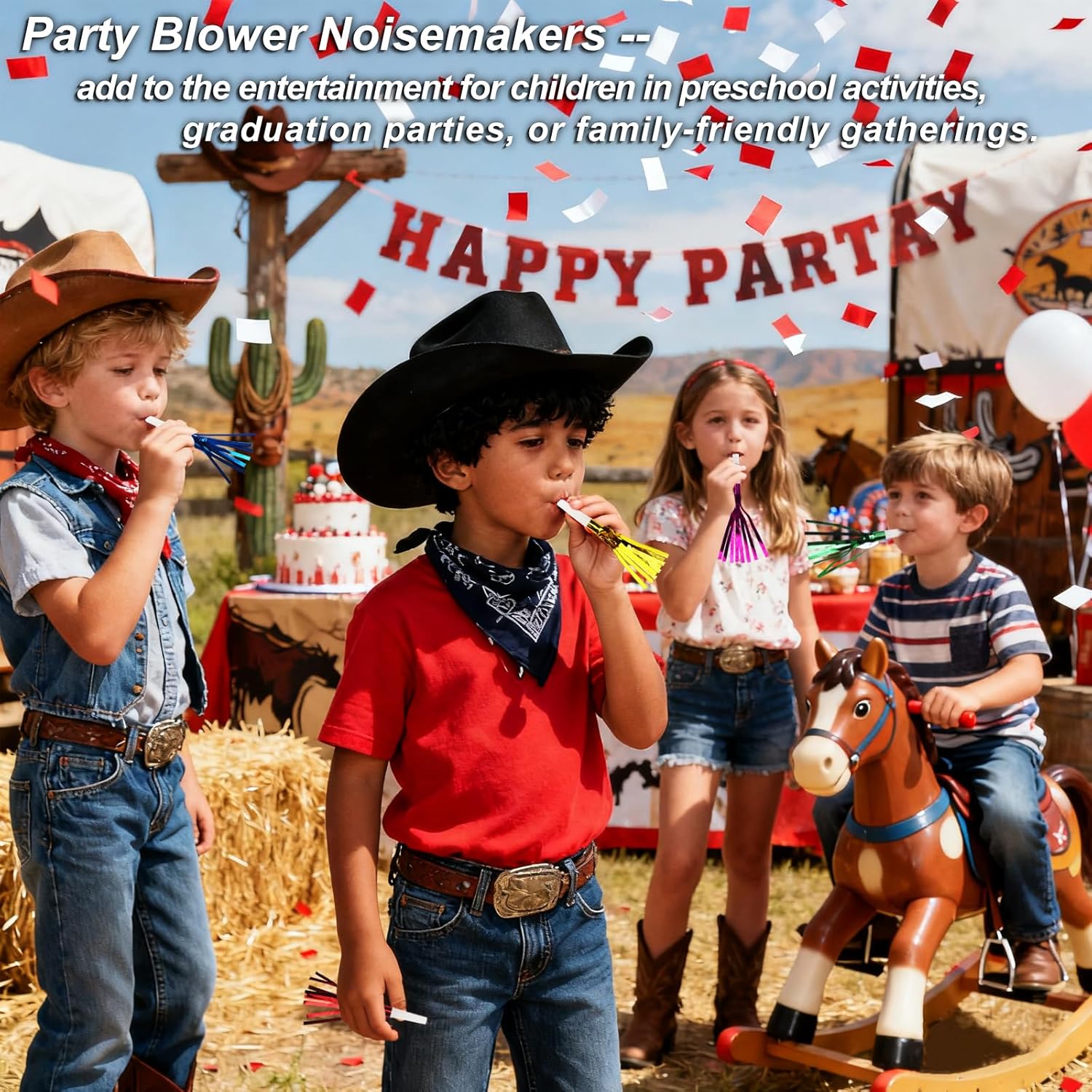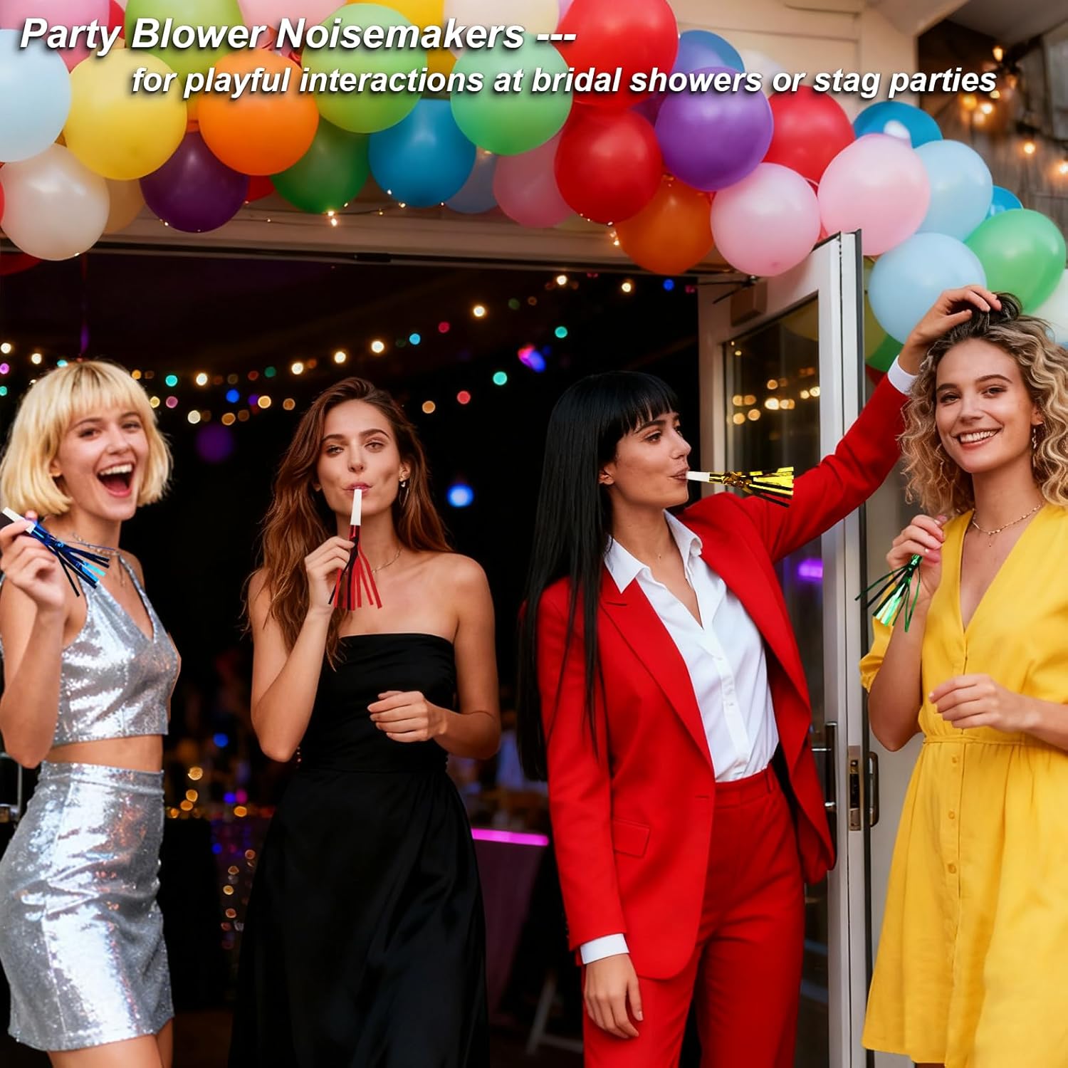 • WHAT YOU WILL GET--- 24pcs Vibrant Party Blowers – Colorful glitter & fringed noisemakers perfect for birthdays, graduations, New Year's Eve, and family gatherings. Fun, reusable, and joyful.