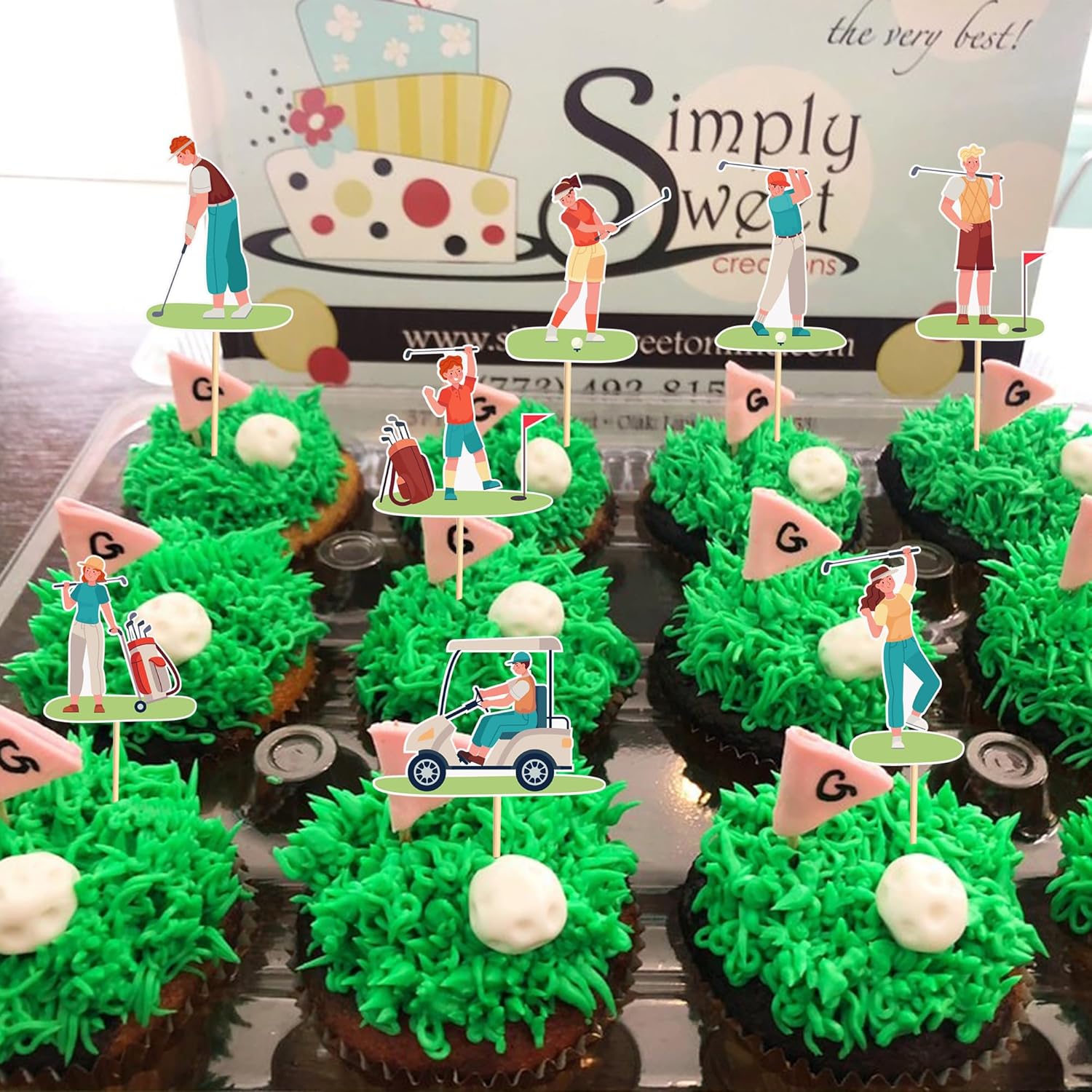 24pcs Golf Cupcake Toppers Golf Carts Cupcake Picks for Golf Sports Player Theme Baby Shower Kids Birthday Party Cake Decorations Supplies