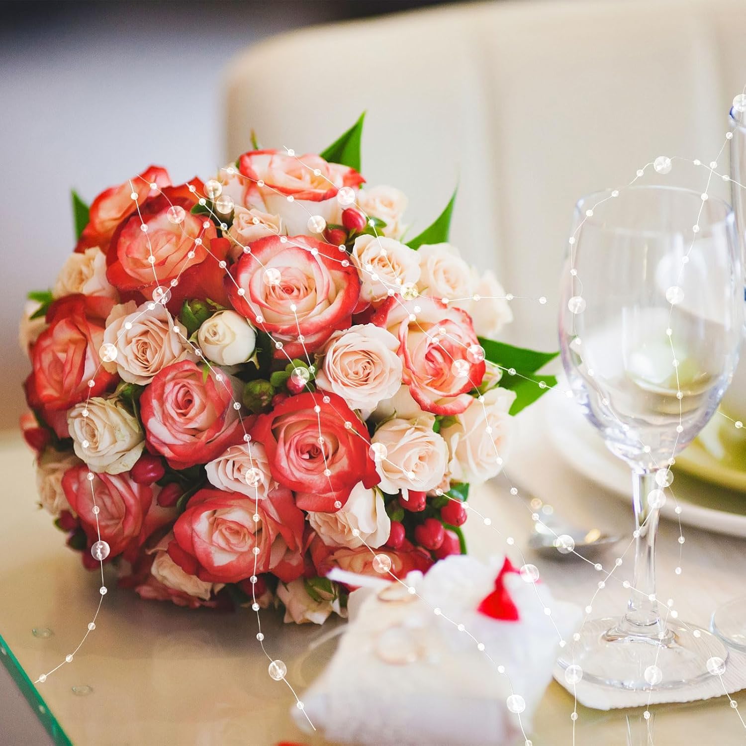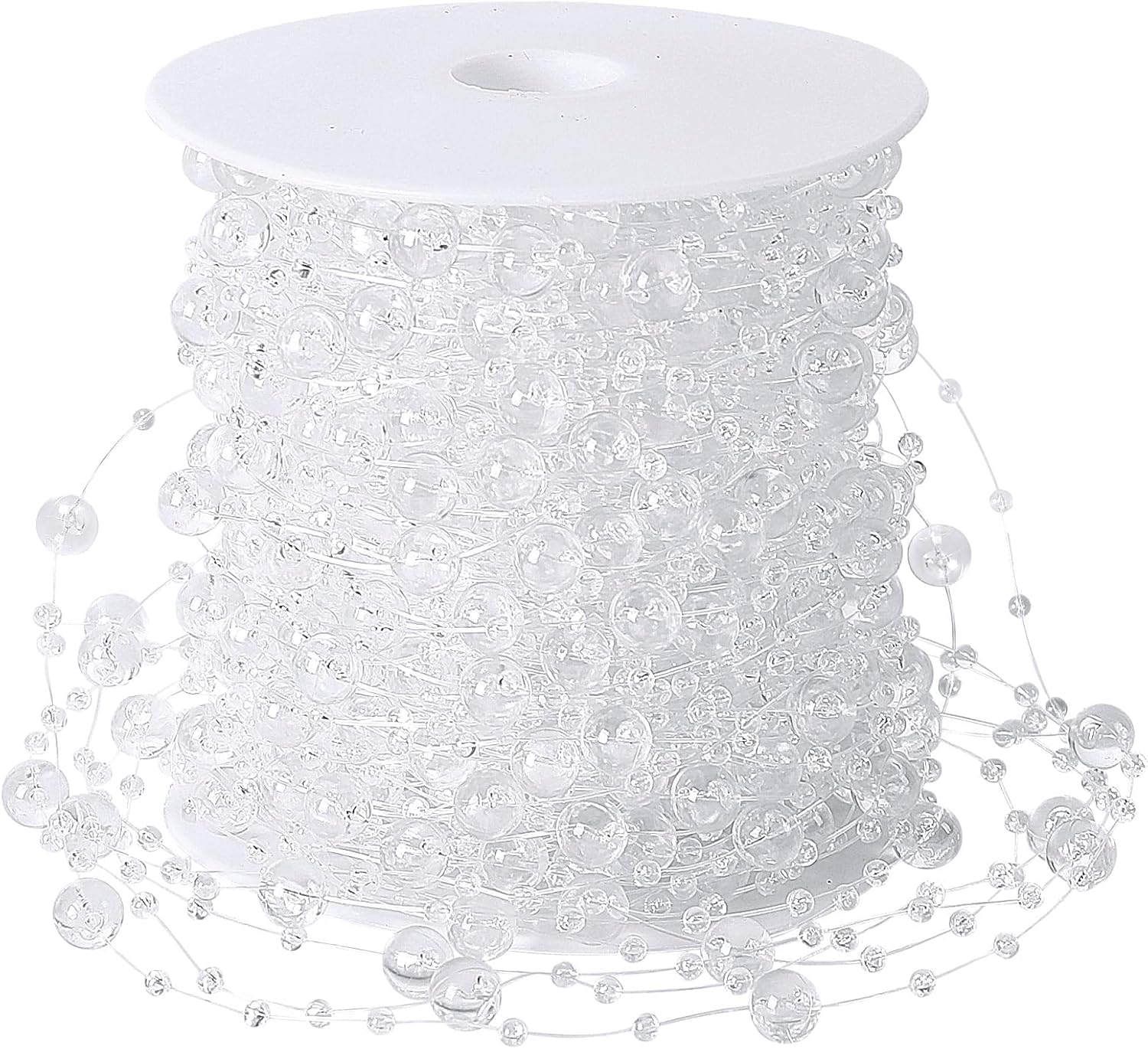 JULBEAR Beads Garland Decoration, 1Rolls 131Feet Clear Christmas Pearl Strands Chain Bead Garland for Christmas Tree Fireplace Wreath Gift Bouquet Crafts Wrapping Wedding Party Centerpieces