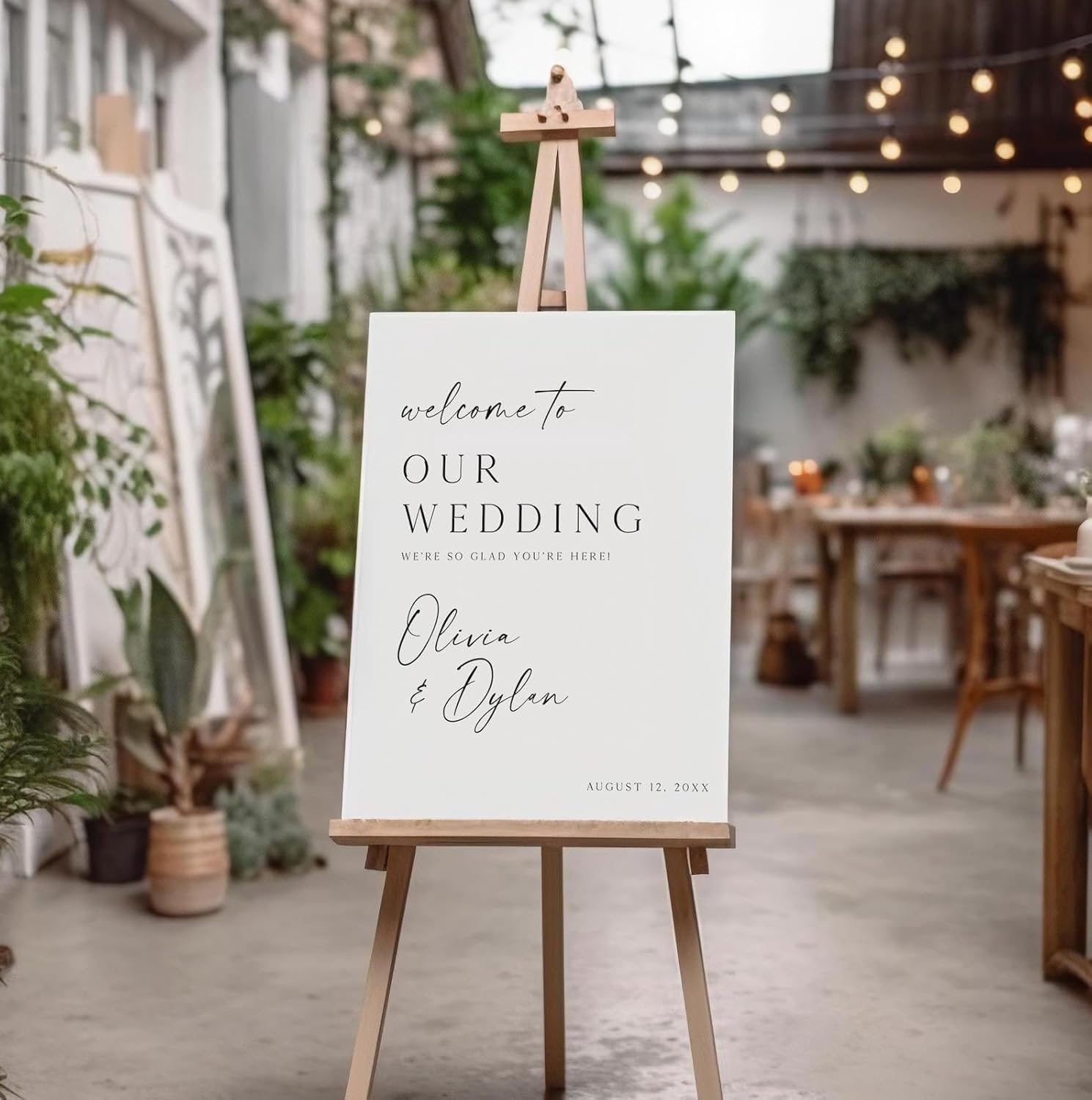 Welcome Wedding Sign Personalized, Modern Elegant Wedding Sign Decorations Signage 12" X 18" (Small), 27" (Medium), 36" (Large), Plastic, Modern, Pole Mount, Weather