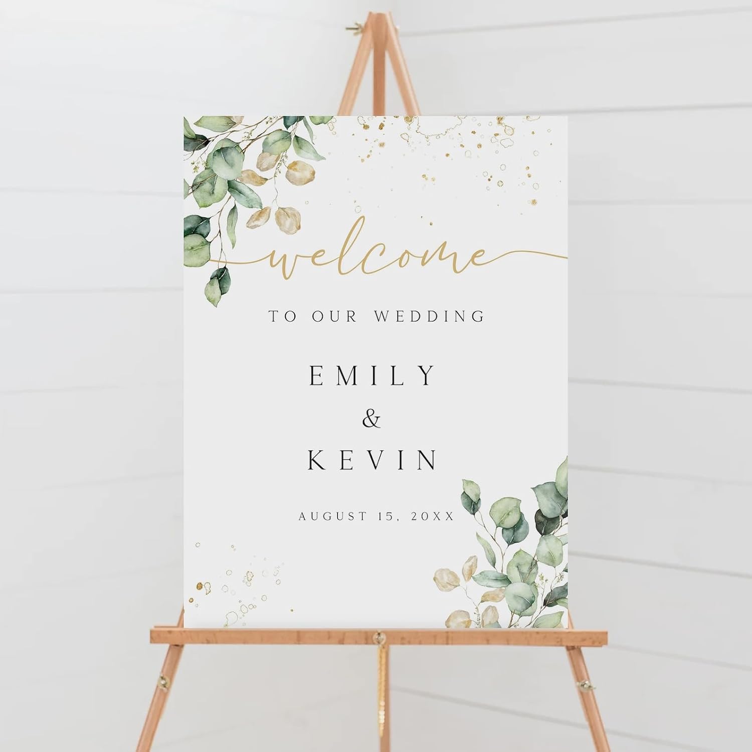 Welcome Wedding Sign Personalized, Greenery Eucalyptus Wedding Sign Decorations Signage 12" X 18" (Small), 27" (Medium), 36" (Large), Plastic, Modern, Pole Mount, Weather