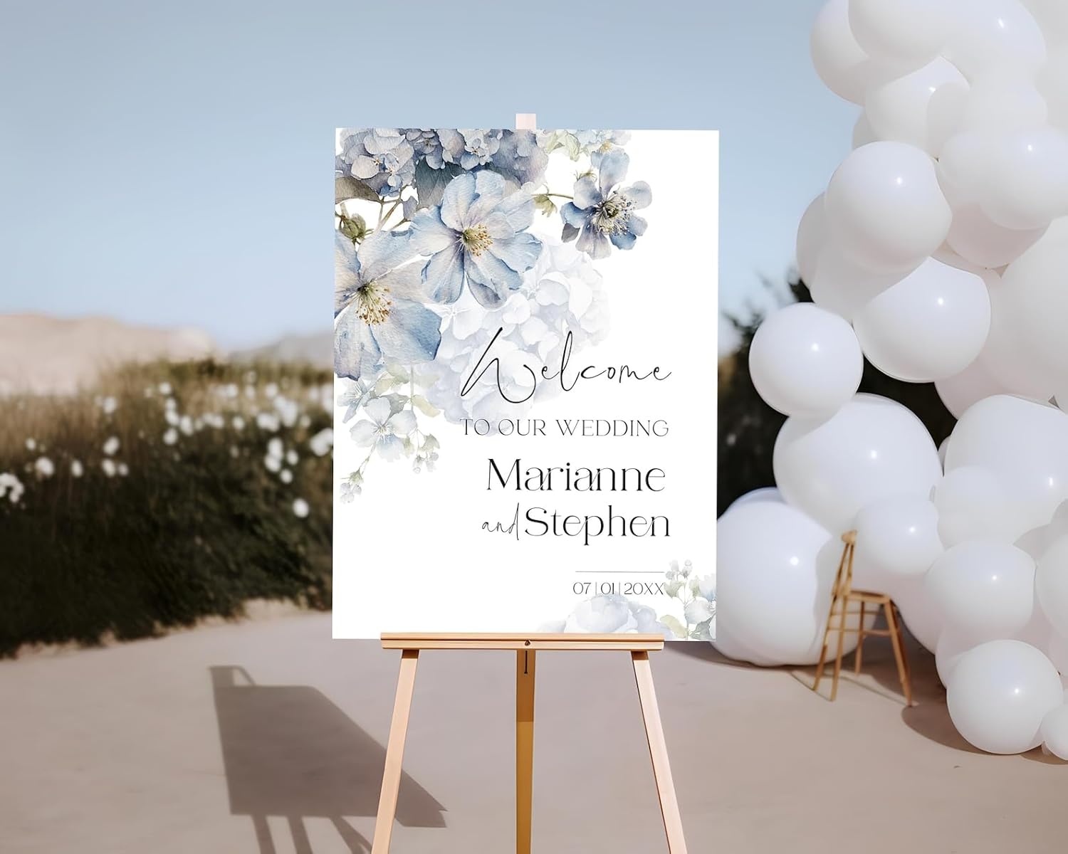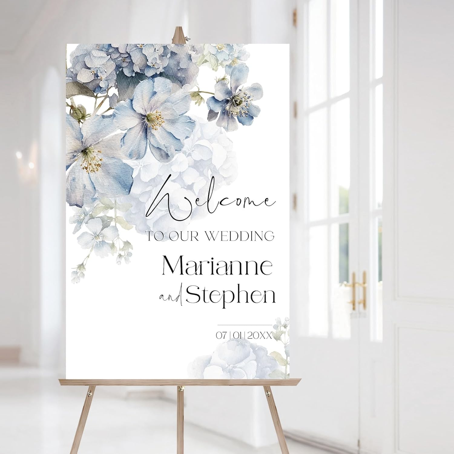 Welcome Wedding Sign Personalized, Soft Blue Flower Wedding Sign Decorations Signage 12" X 18" (Small), 27" (Medium), 36" (Large), Plastic, Modern, Pole Mount, Weather