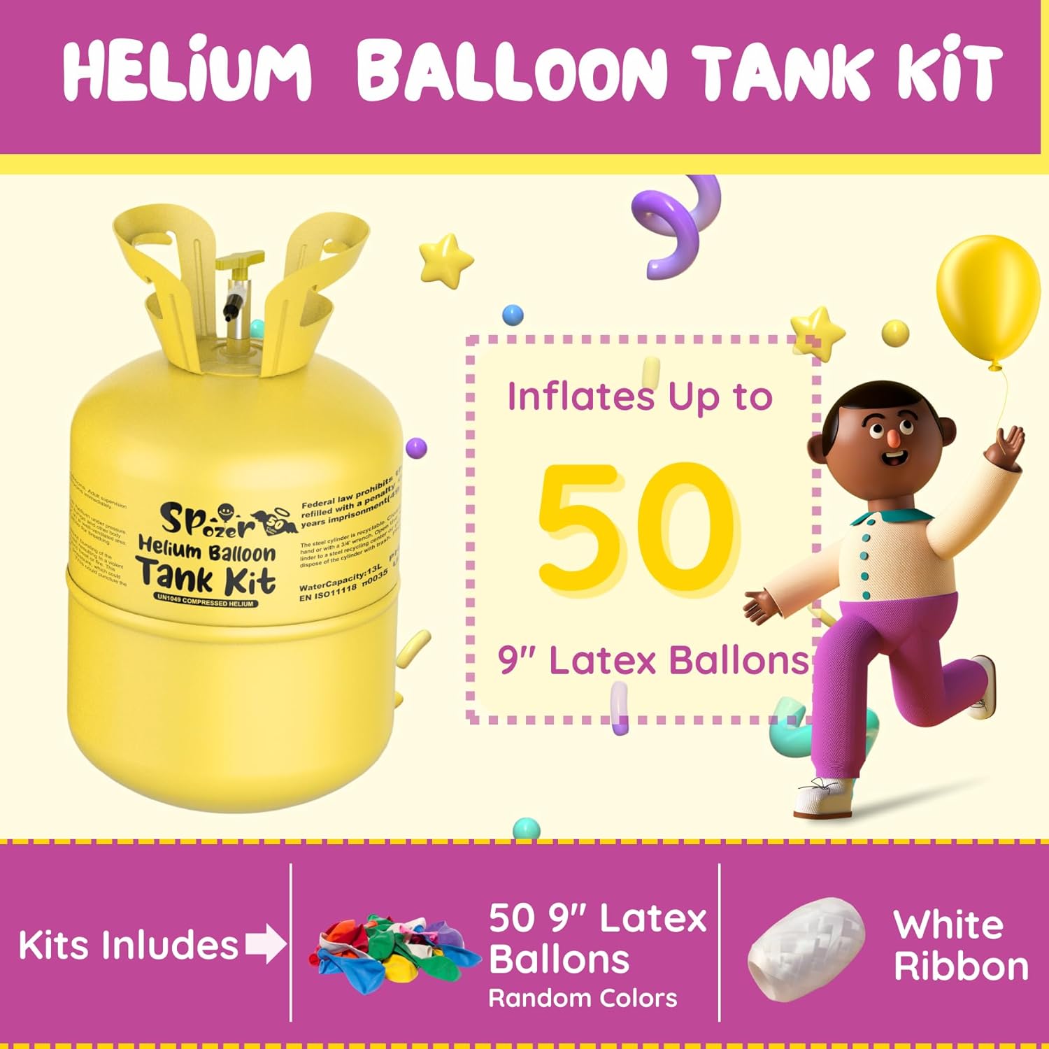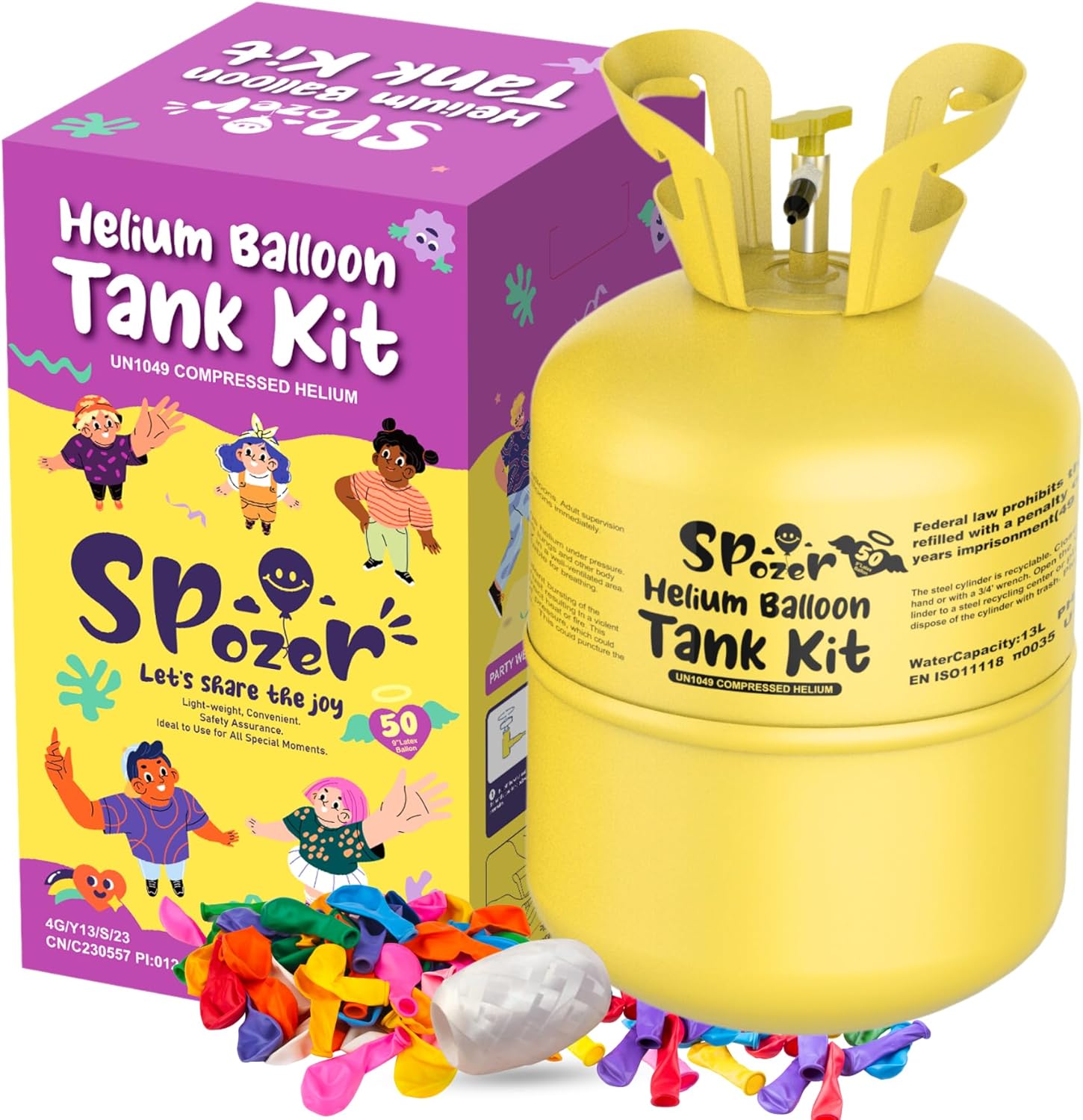 • 【High Purity & Safe】Each Spozer helium tank for balloons at home is filled with 99.99% high-purity helium—non-flammable, non-toxic, and safe for family use. One 13L tank can inflate up to 50 nine-inch latex balloons.