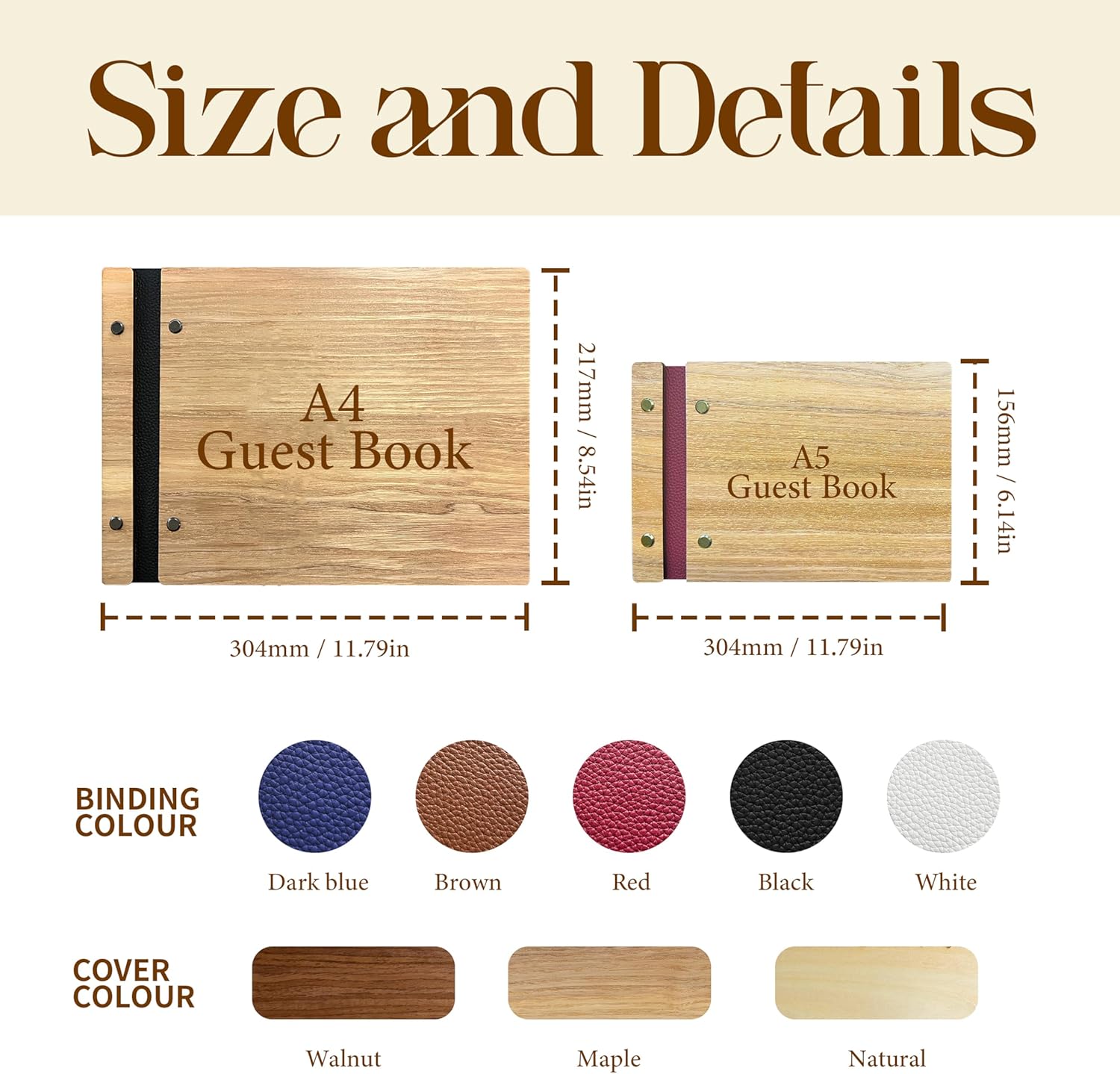 • Beautiful & High-Quality Cover - The Wooden Guestbook Cover is made of high quality genuine leather which can be freely matched with customization options. With a wood cover that is 3.5–4 millimetres thick and sturdy metal spiral binding, this sign-in book provides a flat and secure writing surface, ensuring an effortless experience for all your guests.