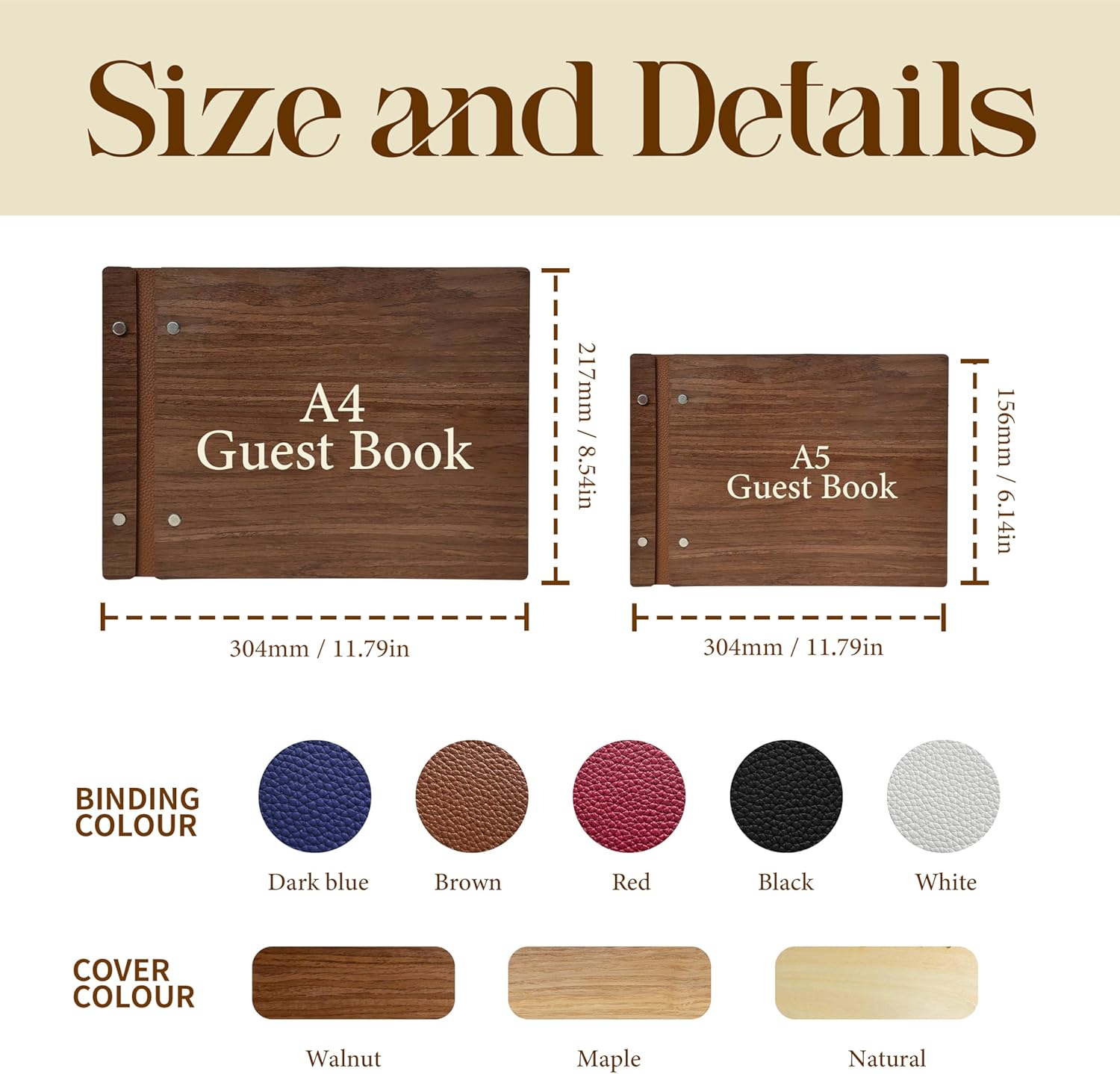 • Beautiful & High-Quality Cover - The Wooden Guestbook Cover is made of high quality genuine leather which can be freely matched with customization options. With a wood cover that is 3.5–4 millimetres thick and sturdy metal spiral binding, this sign-in book provides a flat and secure writing surface, ensuring an effortless experience for all your guests.