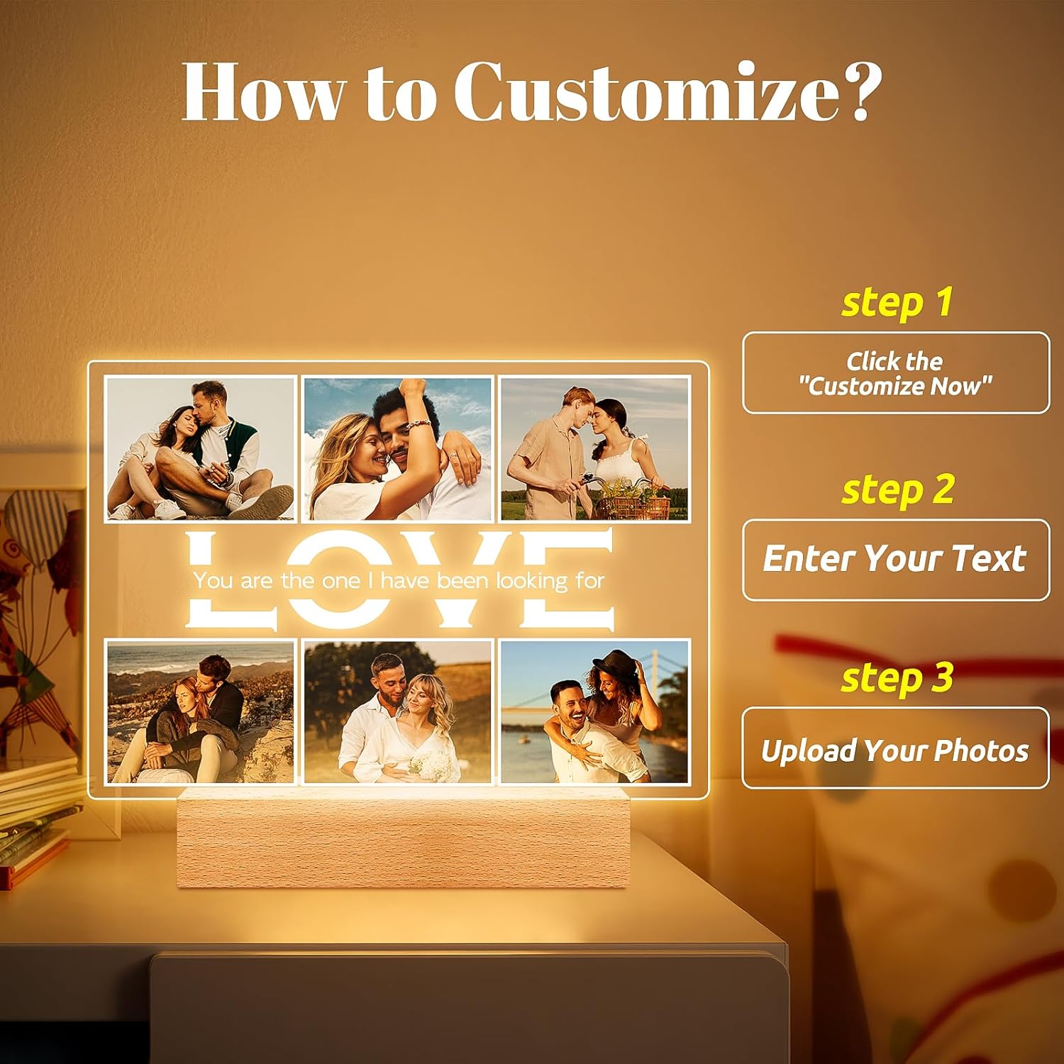 Personalized Anniversary Couples Gifts for Women Men Girlfriend Boyfriend, Custom Picture Frames with Photo, Personalized Photo Frame with Night Light, Customized Gifts for Her Him Wife Husband