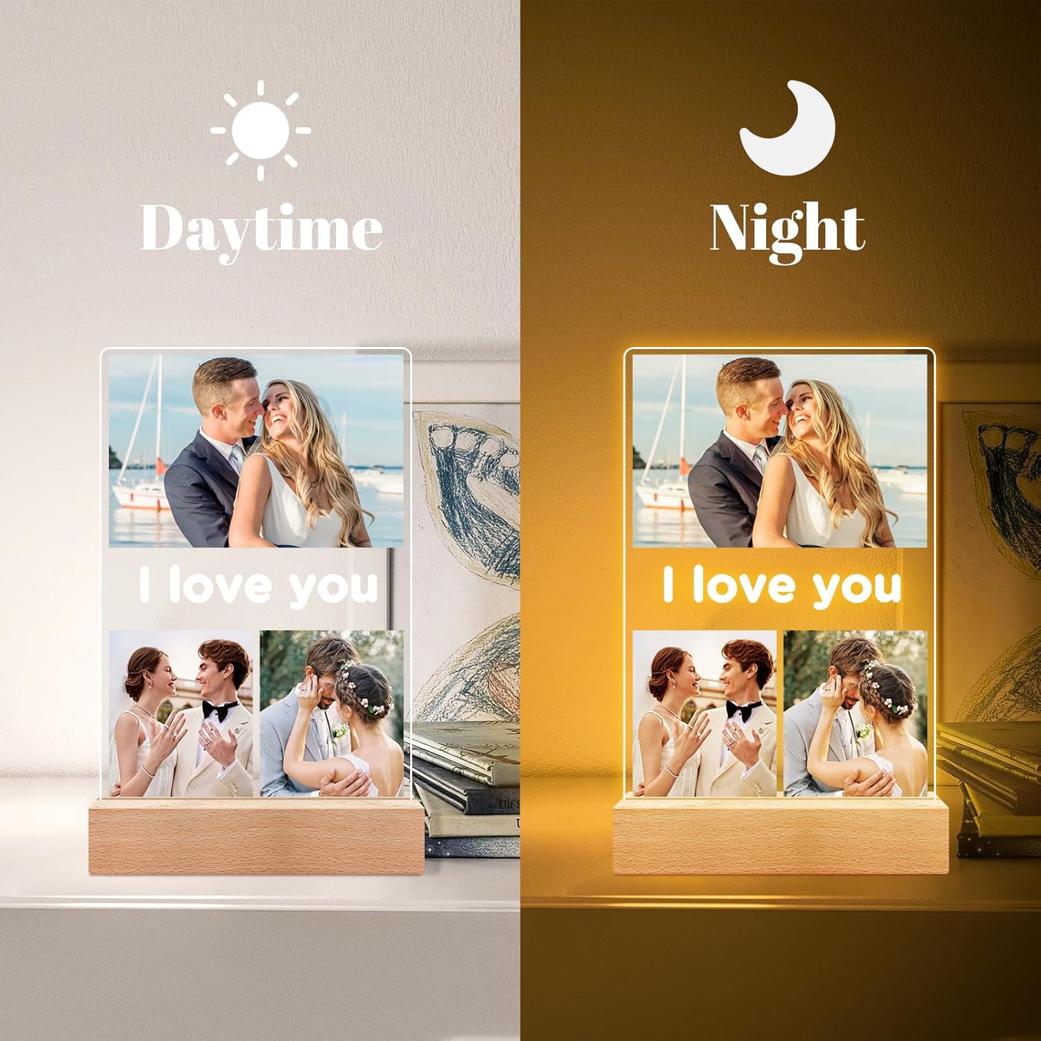 Personalized Anniversary Birthday Gifts for Women Men Her Him, Custom Picture Frames with Photo, Personalized Photo Frame with Night Light, Customized Gifts for Girlfriend Boyfriend Couples