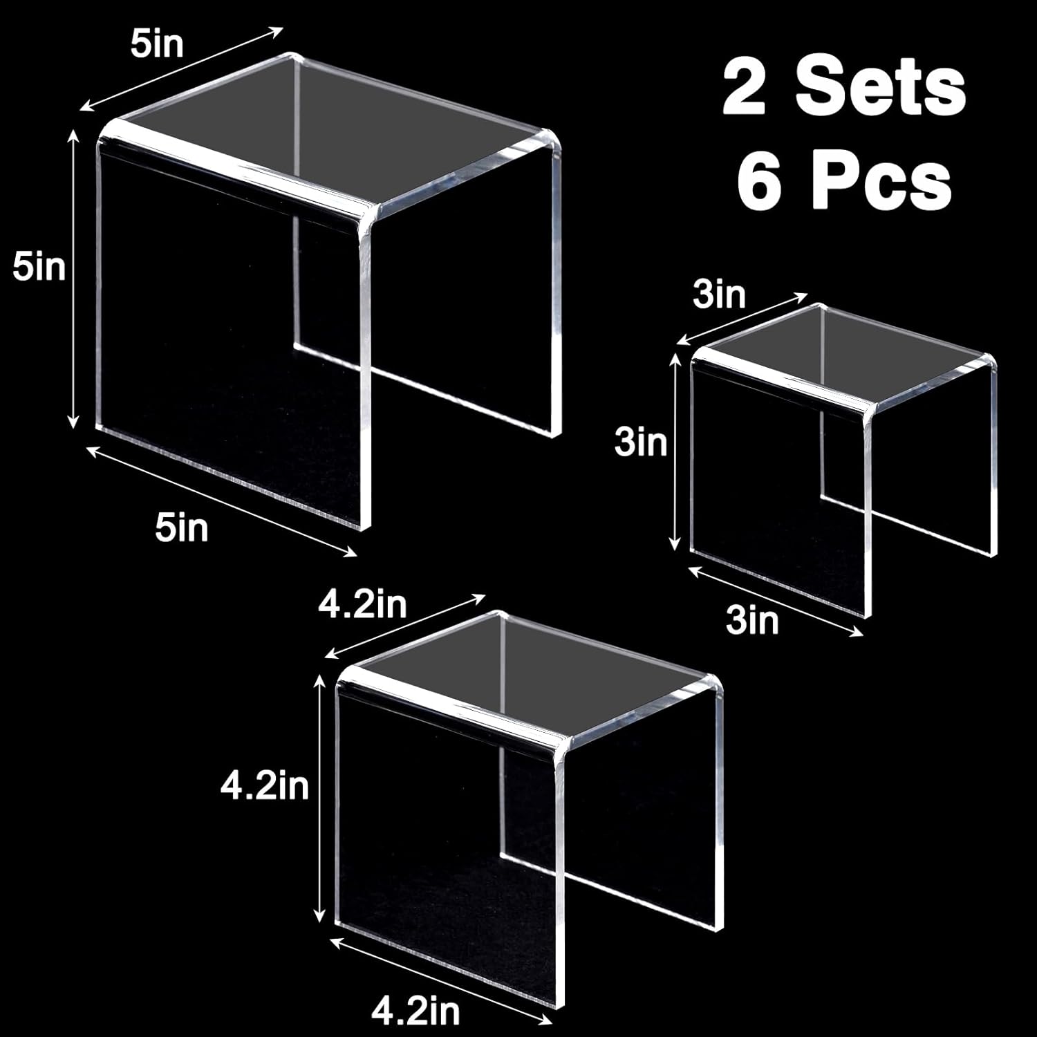 Fixwal 2 Set Acrylic Display Risers Cupcake Stands Clear Dessert Table Display Set, Display Shelf for Funko POP Figures-3"x4"x5"