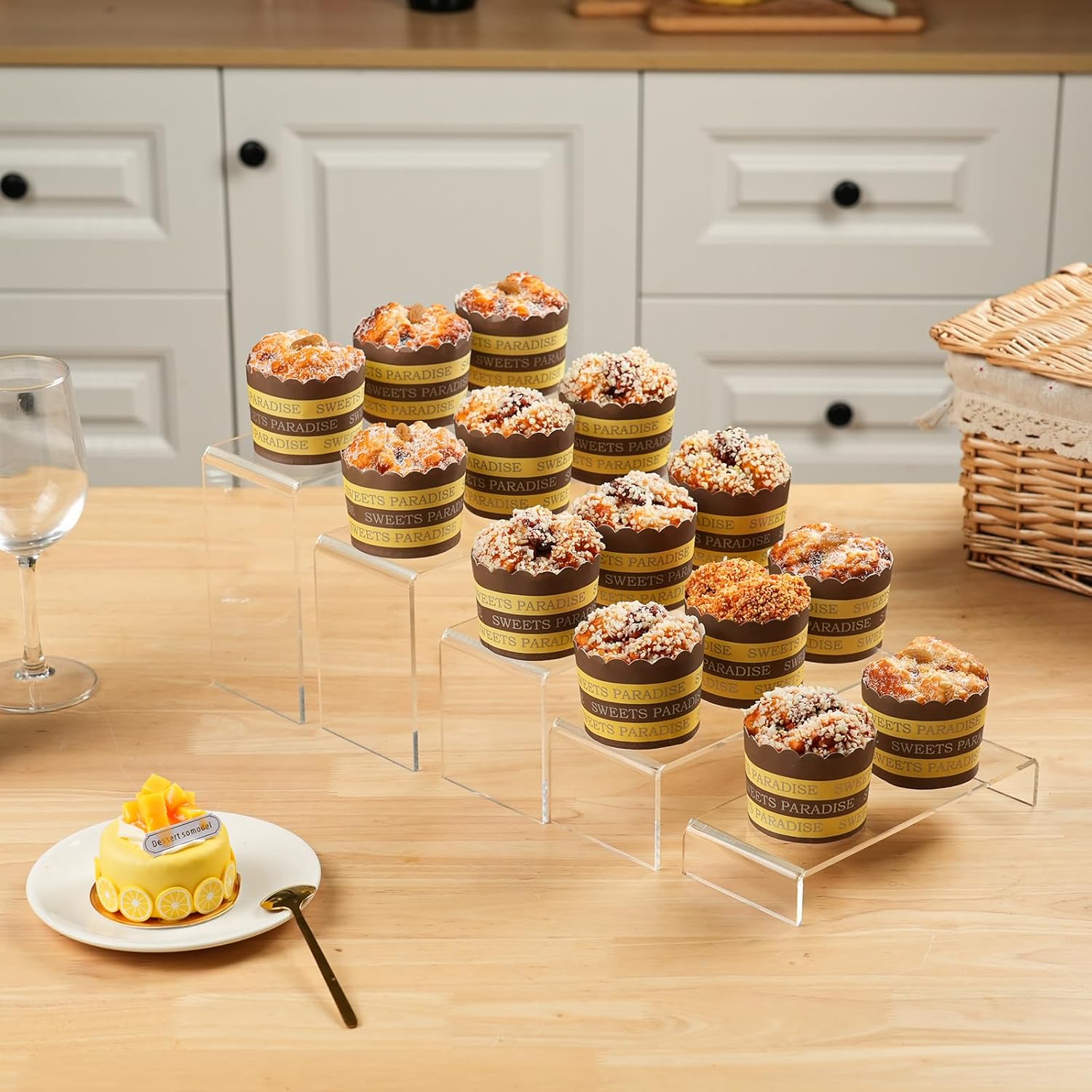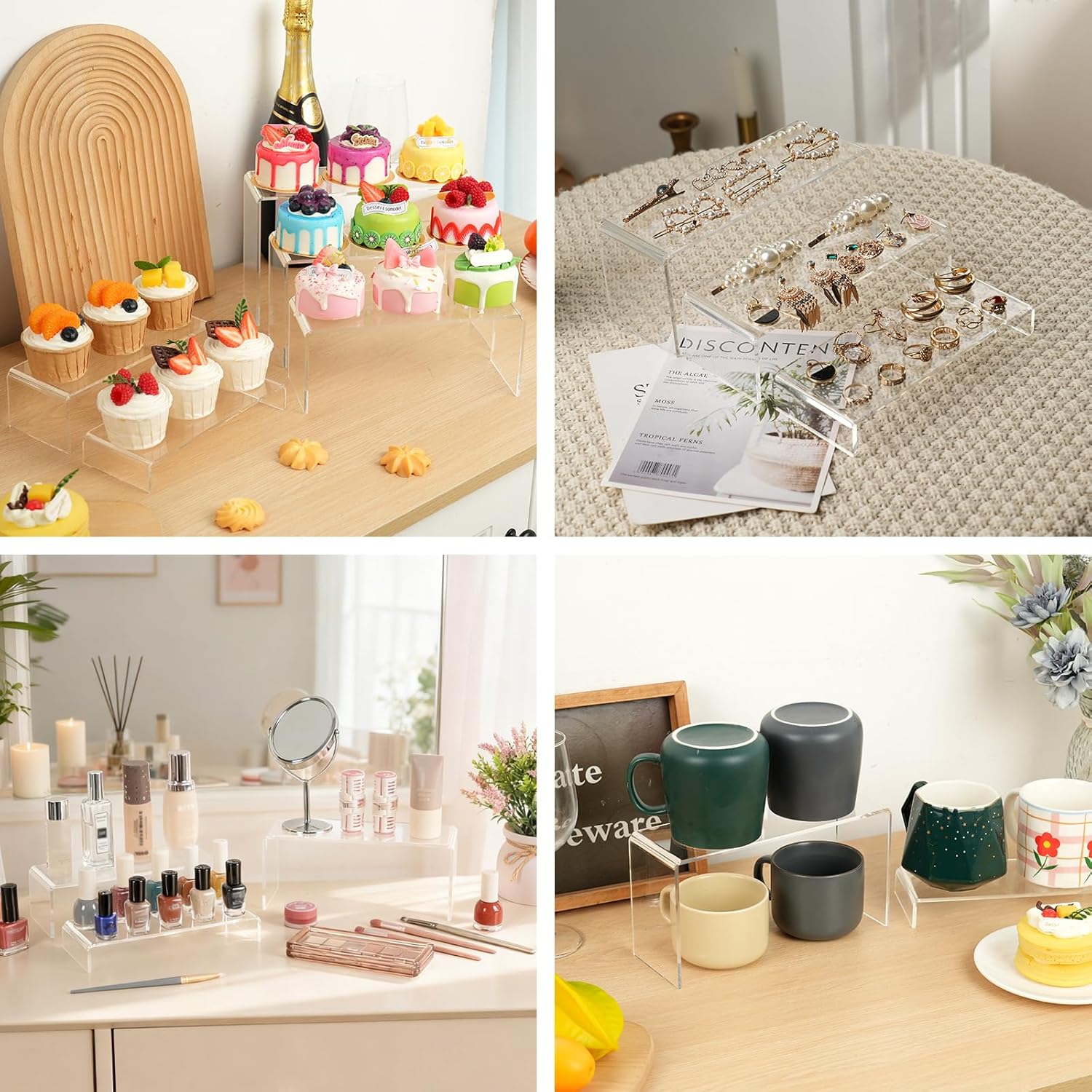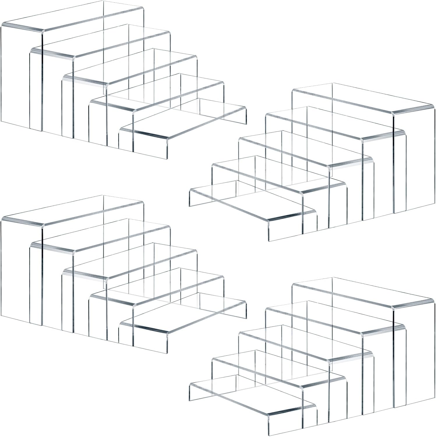 Fixwal 20pcs Large Acrylic Risers 4 Set Acrylic Display Stand Perfume Organizer Stands Clear Rectangular Dessert Table Display Set, Display Shelf for Show Cupcake, Figures, Jewelry, Toys