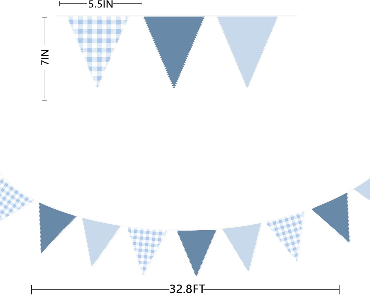 • Package Including:1 pack dusty blue gingham fabric bunting banner garland in dusty blue, light blue and blue gingham colors, with 36pcs flags in 10M/32.8Feet. Flag Size: 5.5in width x 7in height