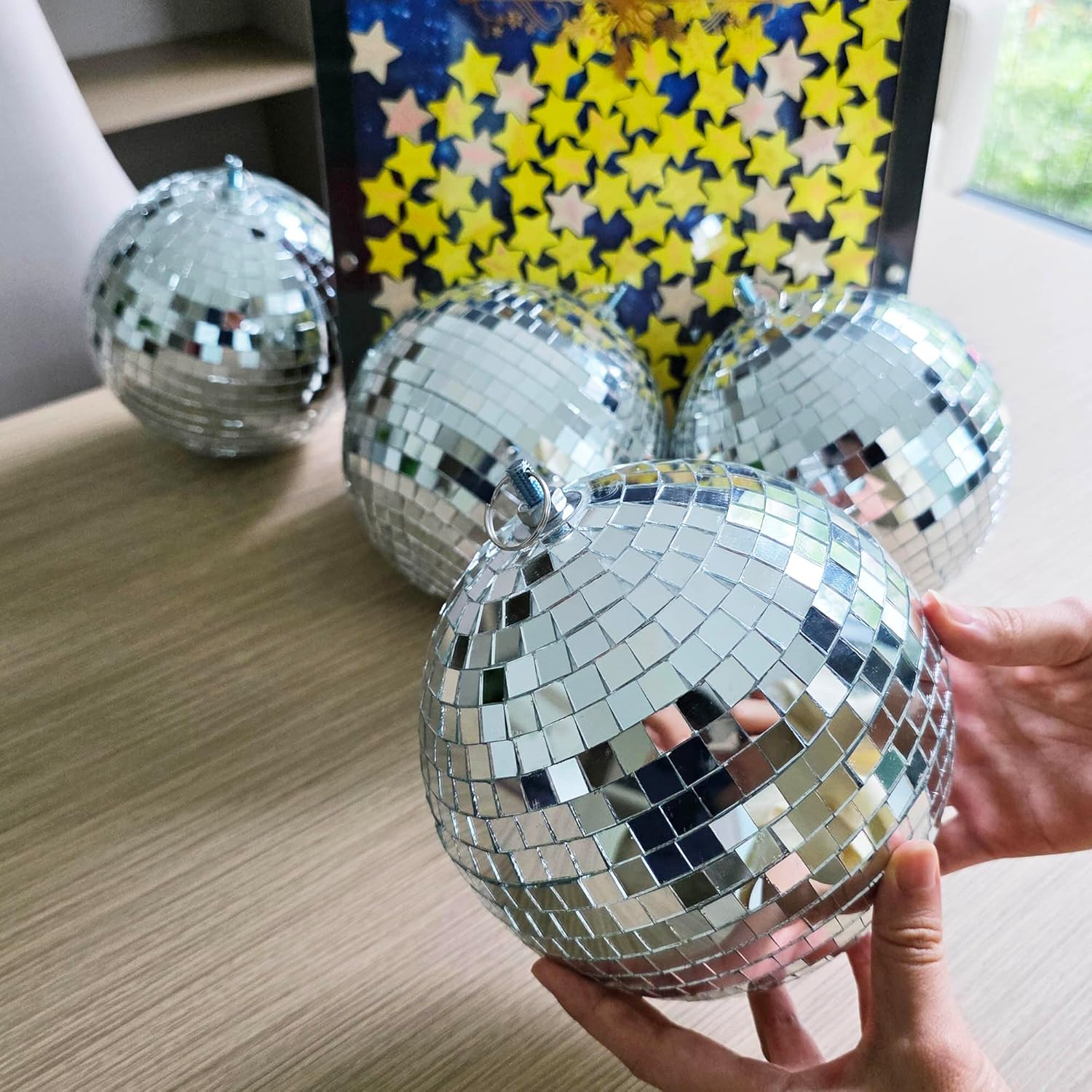 • Premium Material - 4 Packs of 7" Bright Reflective Mirror Disco Balls, made of solid foam construction, are covered with tiny mirror squares for stunning and shimmering light-reflecting display