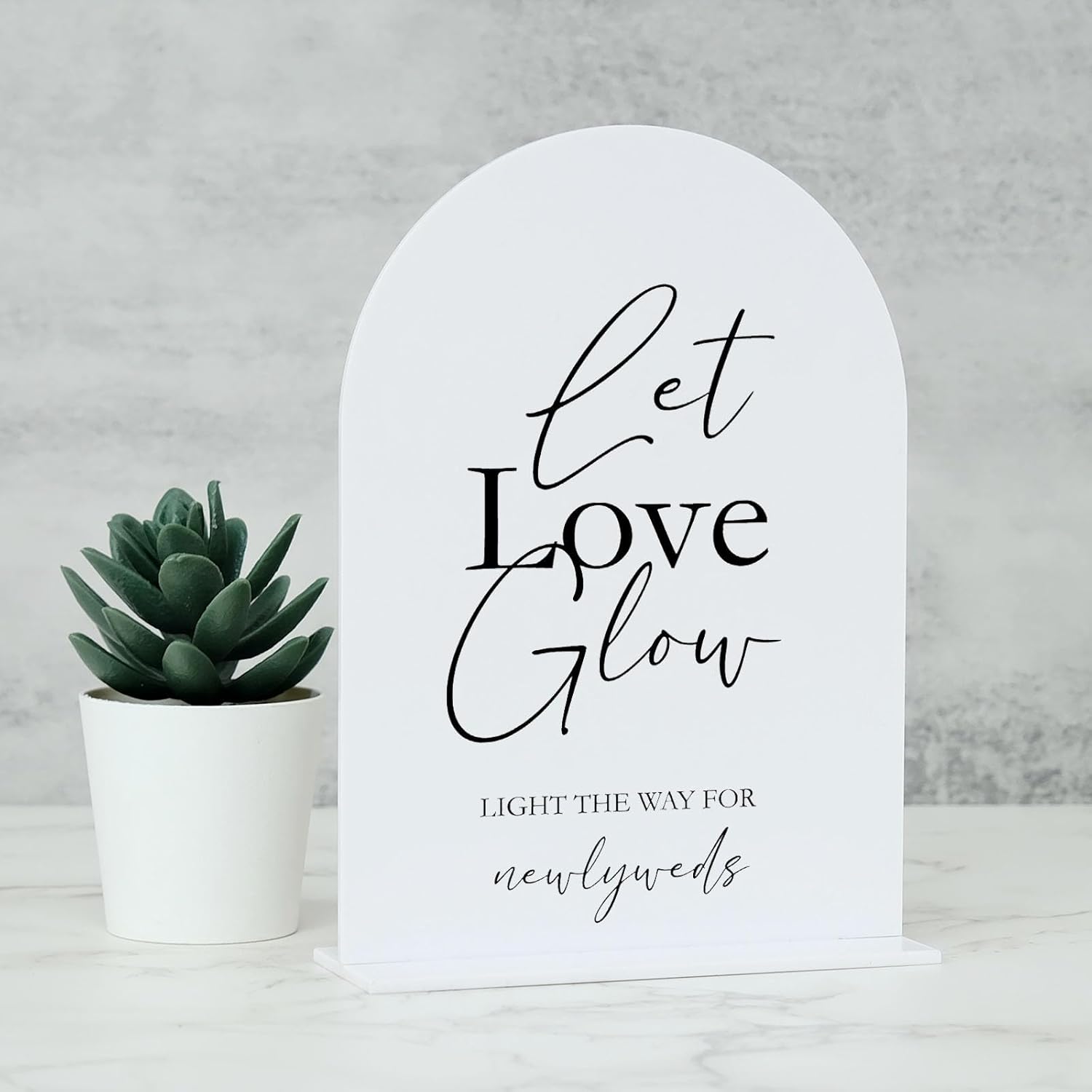 Acrylic Let Love Glow Sign with Stand- 5"x7" White Arched Wedding Sign and Base,1/8" Thick | Modern Calligraphy Black Lettering Arch Acrylic Sign for Wedding Reception & Party(5x7Inch, White)