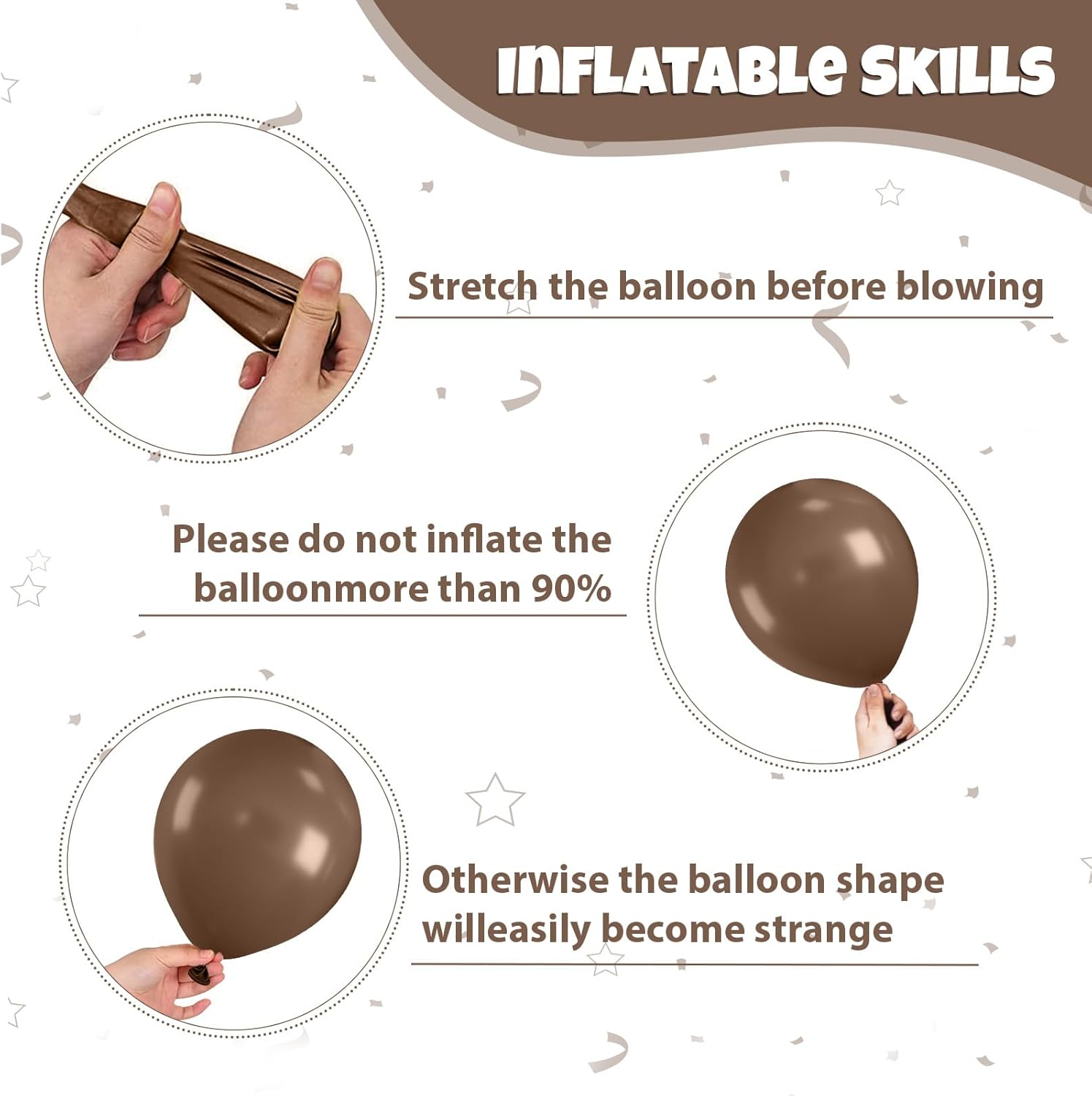 • Balloon material: All balloons are made of natural latex, and each balloon has been strictly hand-tested. The balloons are elastic, non-toxic, harmless and safe. They can be filled with air or helium, and it is recommended to use with a balloon pump