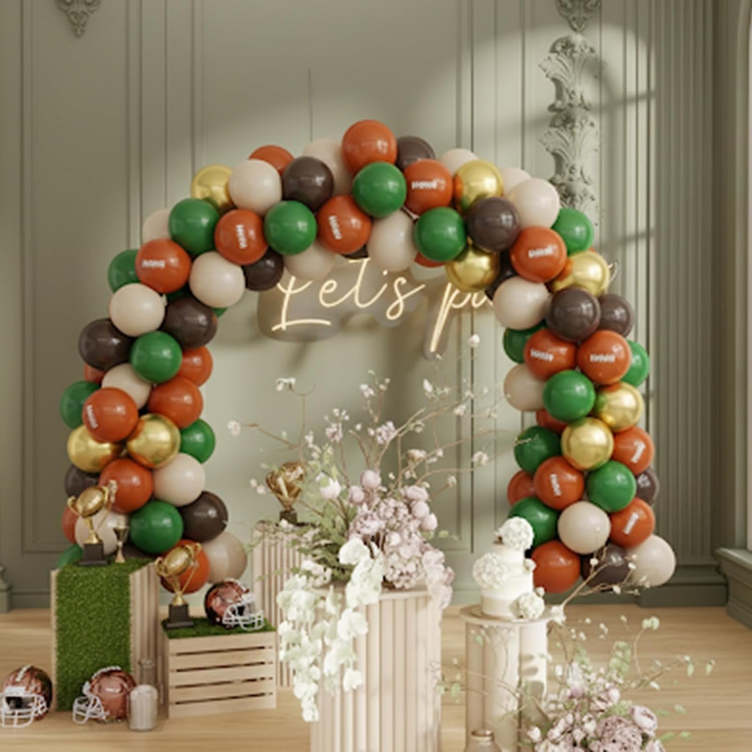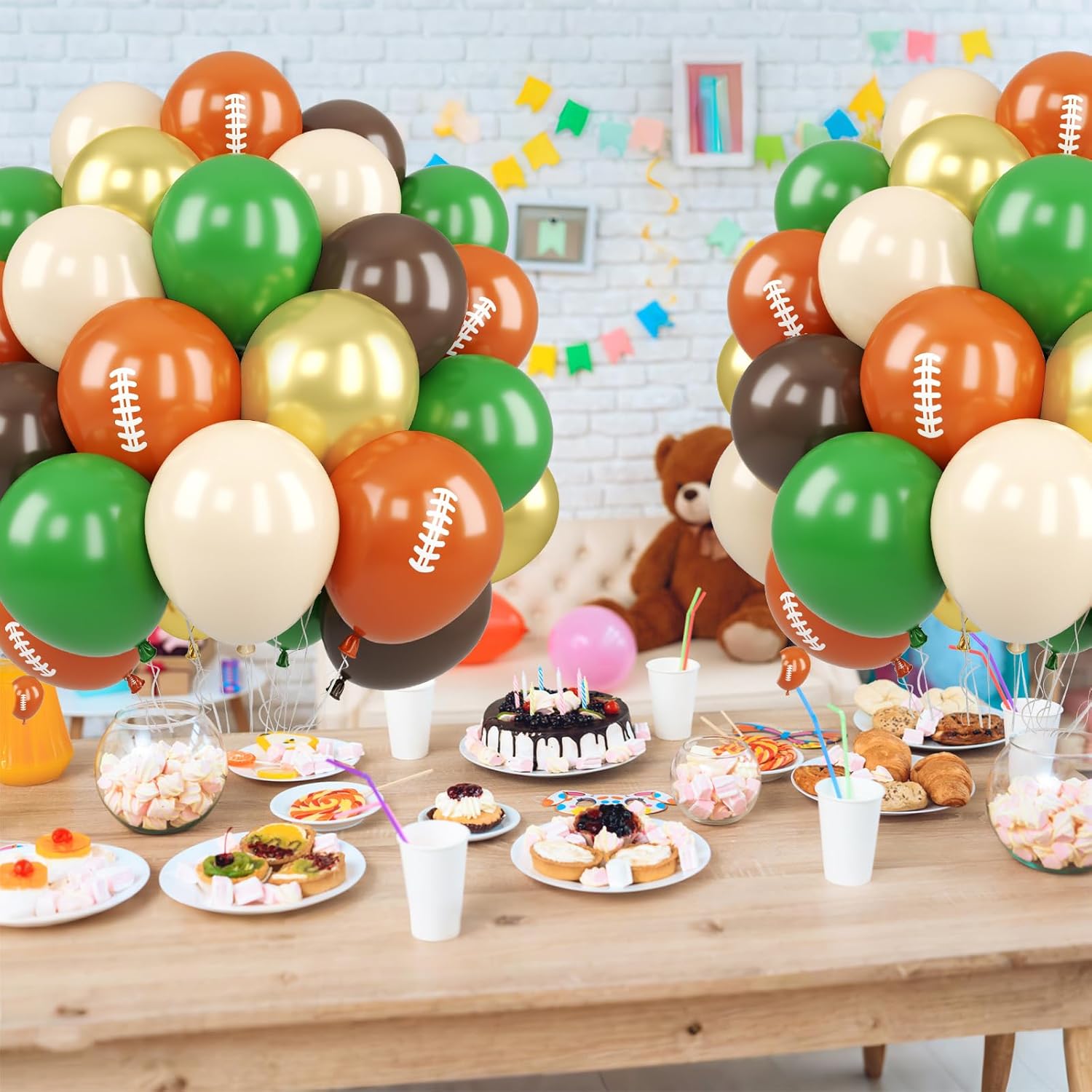 Football Balloons, 50PCS 12inch Party Balloons Dark Green Gold Black Beige Ballons Football Printed Balloons For Boys Game Sports Birthday Party Football Themed Decorations