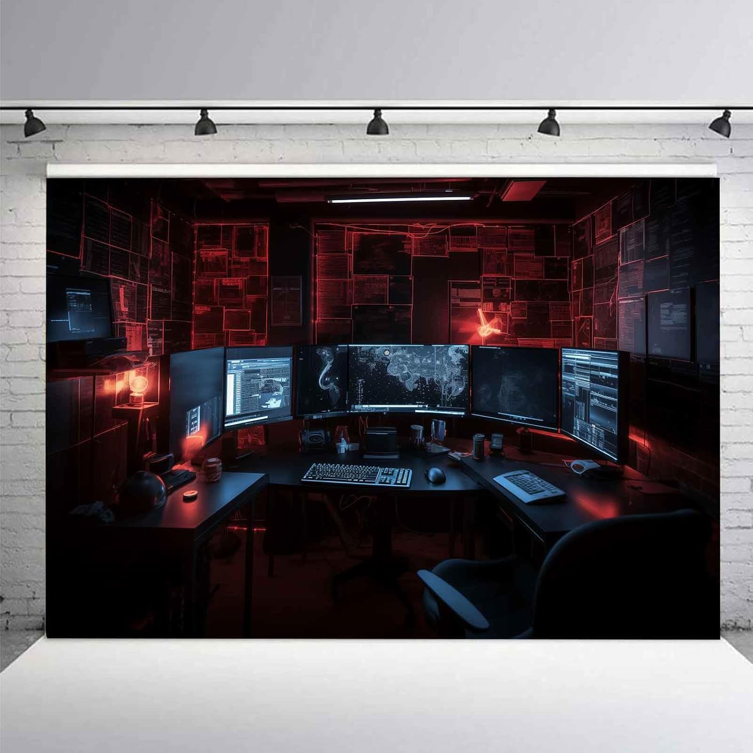 Computer Photo Backdrop Computers Hacker Room Background for Photography Party Room Decorations Photo Booth Props Supplies YUNBSJ007