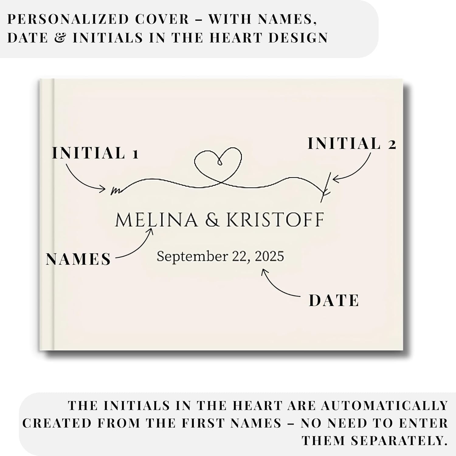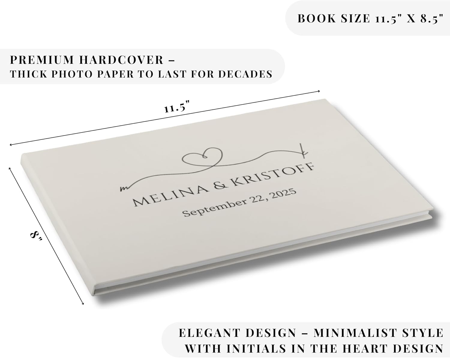 • Custom Keepsake – Personalized wedding guest book with custom name and date on the cover, designed as a timeless keepsake for weddings, receptions, and special celebrations to preserve memories for years.