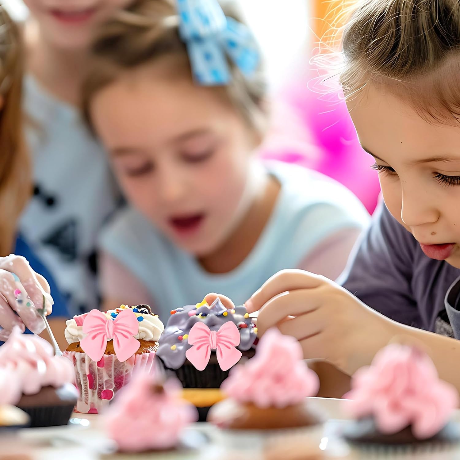 • 【Bow Cupcake Toppers】Our pink bow cupcake toppers are crafted from high-quality resin, ensuring durability and safety for food. These toppers are perfect for adding a touch of elegance to your cakes and desserts.