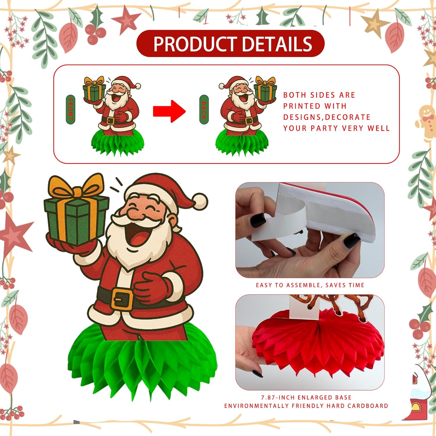 • Quality Material: Our Honeycomb Centerpieces Christmas Table Decorations are made of quality double-sided cardboard and honeycomb paper spheres in high-definition vibrant colors with laminated surface, which is waterproof, fade-proof, tear-resistant for a long time use.