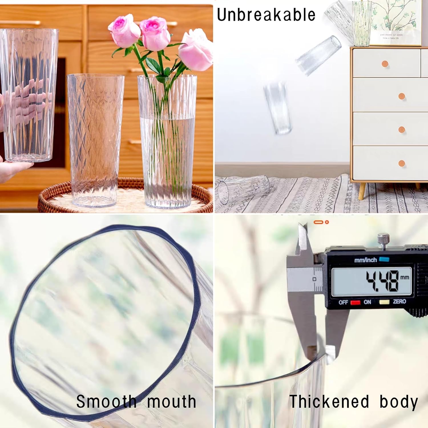 • 🌷【Perfect Centerpiece】The crystal clear large cylindrical plastic vase makes a stunning centerpiece with its tall and elegant design. Whether you are planning a wedding, party, intimate dinner or grand event, combine them with your favorite flowers, candles or other decorative elements to create a focal point that will leave a lasting impression on your guests.