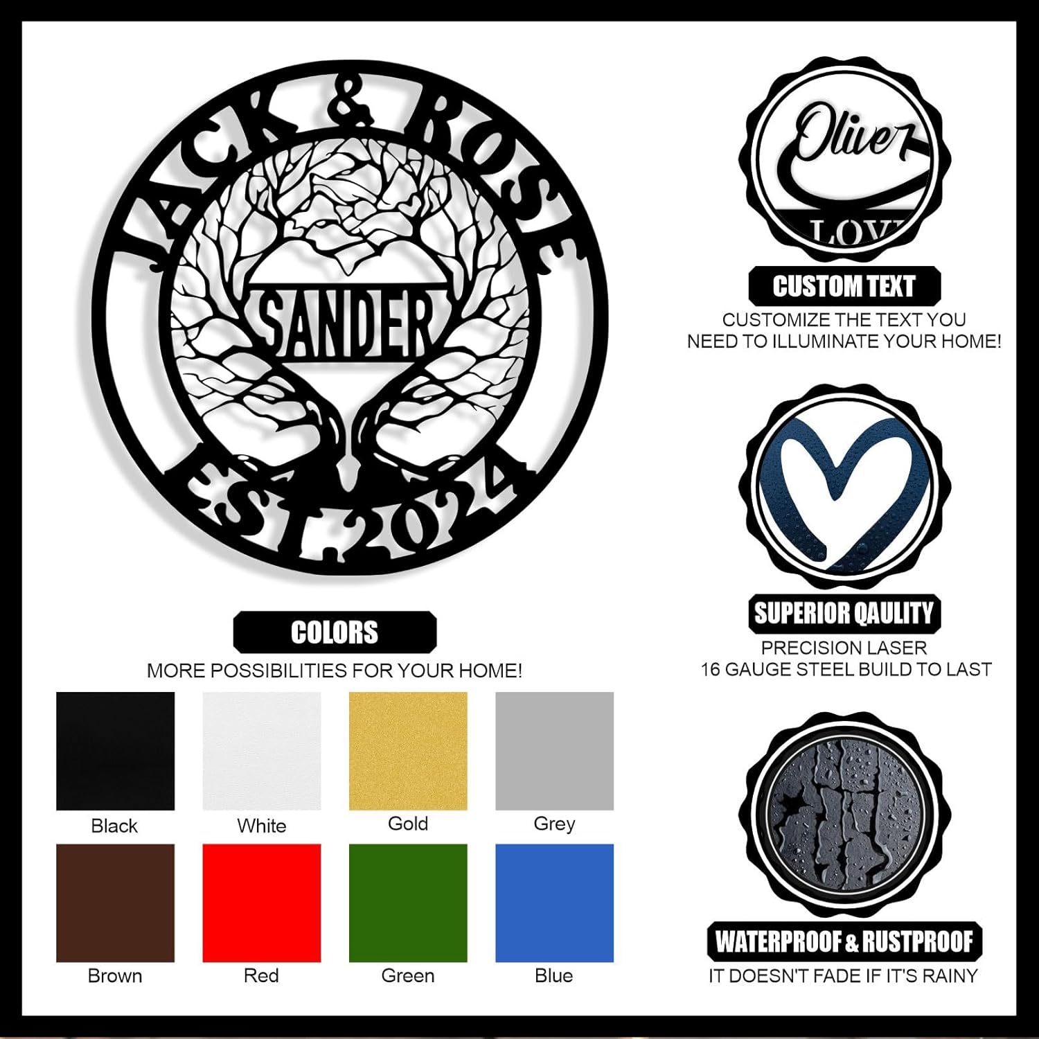 • Personalized & Name Customizable -- Click "CUSTOMIZE NOW" and enter the name or text. Our personalized Tree of Life Metal Sign designs make it unique, beautiful and elegant to create a perfect personalized family name sign for you. This custom last name sign is customized with your last name, first names and established date, will look beautiful indoor and outdoor any home.