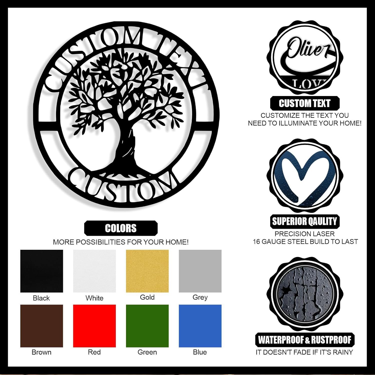 • Personalized & Name Customizable -- Click "CUSTOMIZE NOW" and enter the name or text. Our personalized Tree of Life Metal Sign designs make it unique, beautiful and elegant to create a perfect personalized family name sign for you. This custom last name sign is customized with your last name, first names and established date, will look beautiful indoor and outdoor any home.