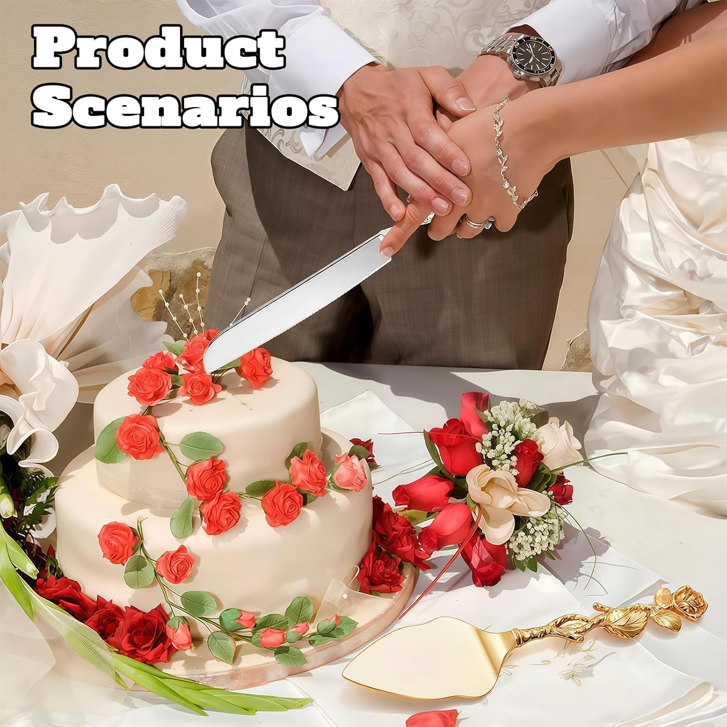 • Premium Silver Cake Cutting Set Quality - Crafted with superior materials featuring a sharp blade, silver-rose handle, and sturdy construction; resistant to bending, easy to clean, and built to last for lifelong use