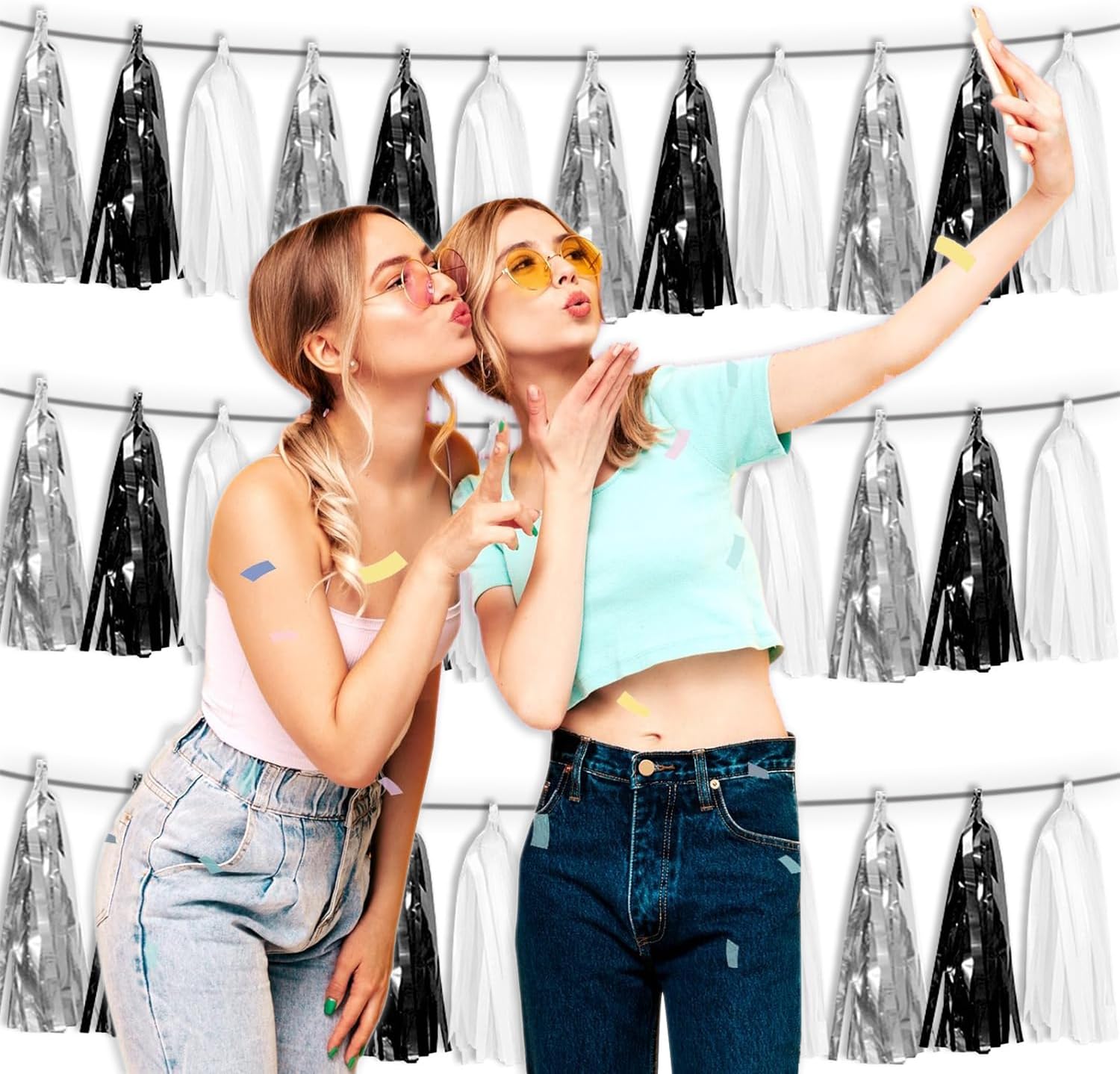 • 【Package Includes】The total length of them Black Silver white birthday tassels banner is 30 feet, divided into 3 strips, each 10 feet long. Each banner contains 15 tassels, and each tassel measures 14 inches, for birthday decorations many occasions uitable for Patriotic display, Homecoming Float, Christmas Float, ecorative metal trailers, graduation floats etc