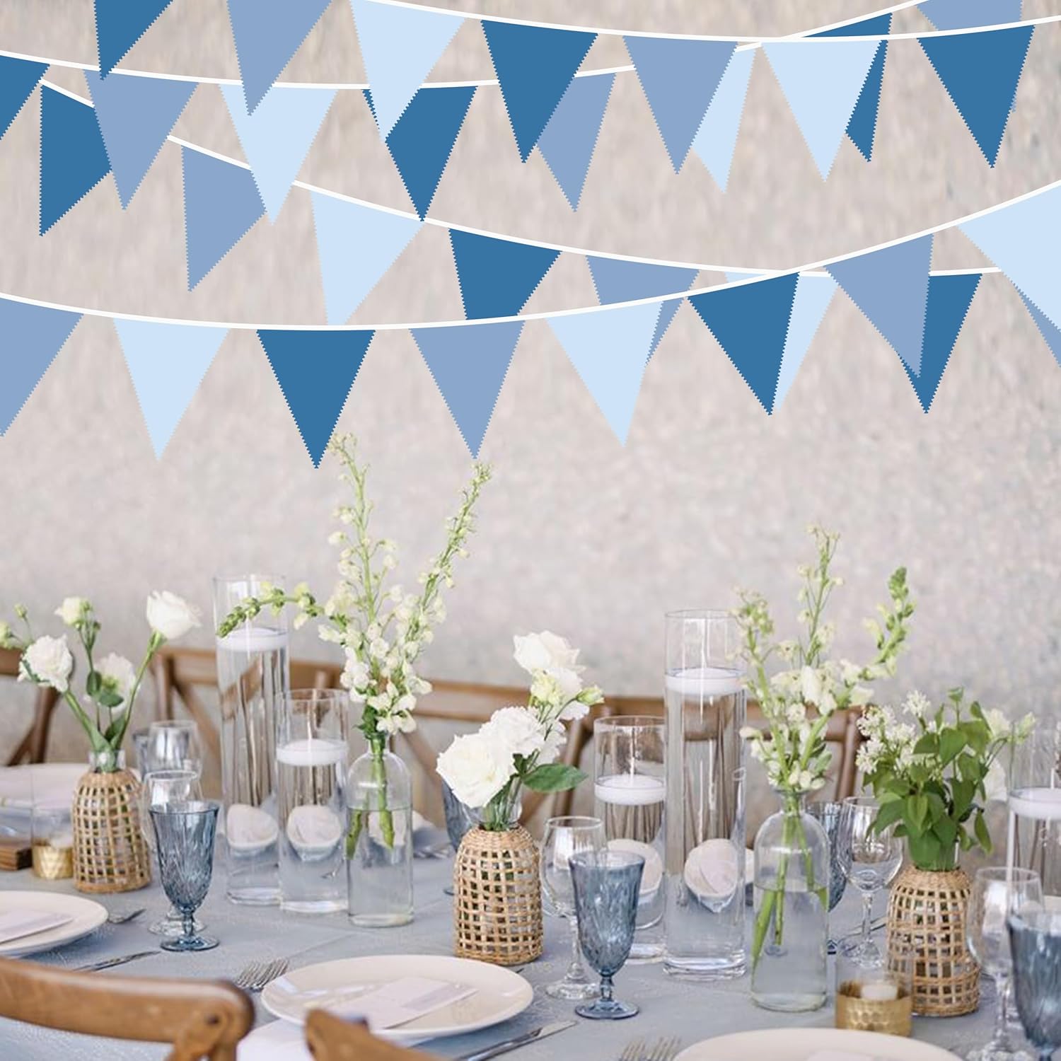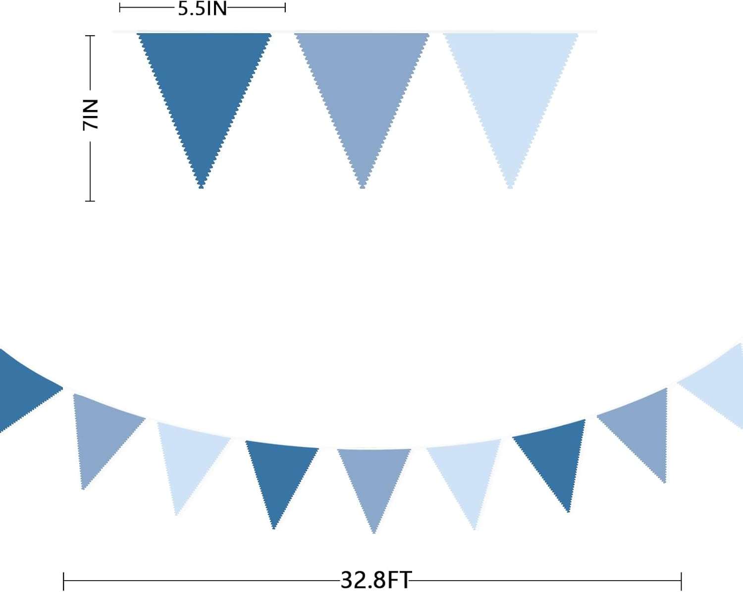• Package Including:1 pack retro blue fabric bunting banner garland in blue, dusty blue and light colors, with 36pcs flags in 10M/32.8Feet. Flag Size: 5.5in width x 7in height