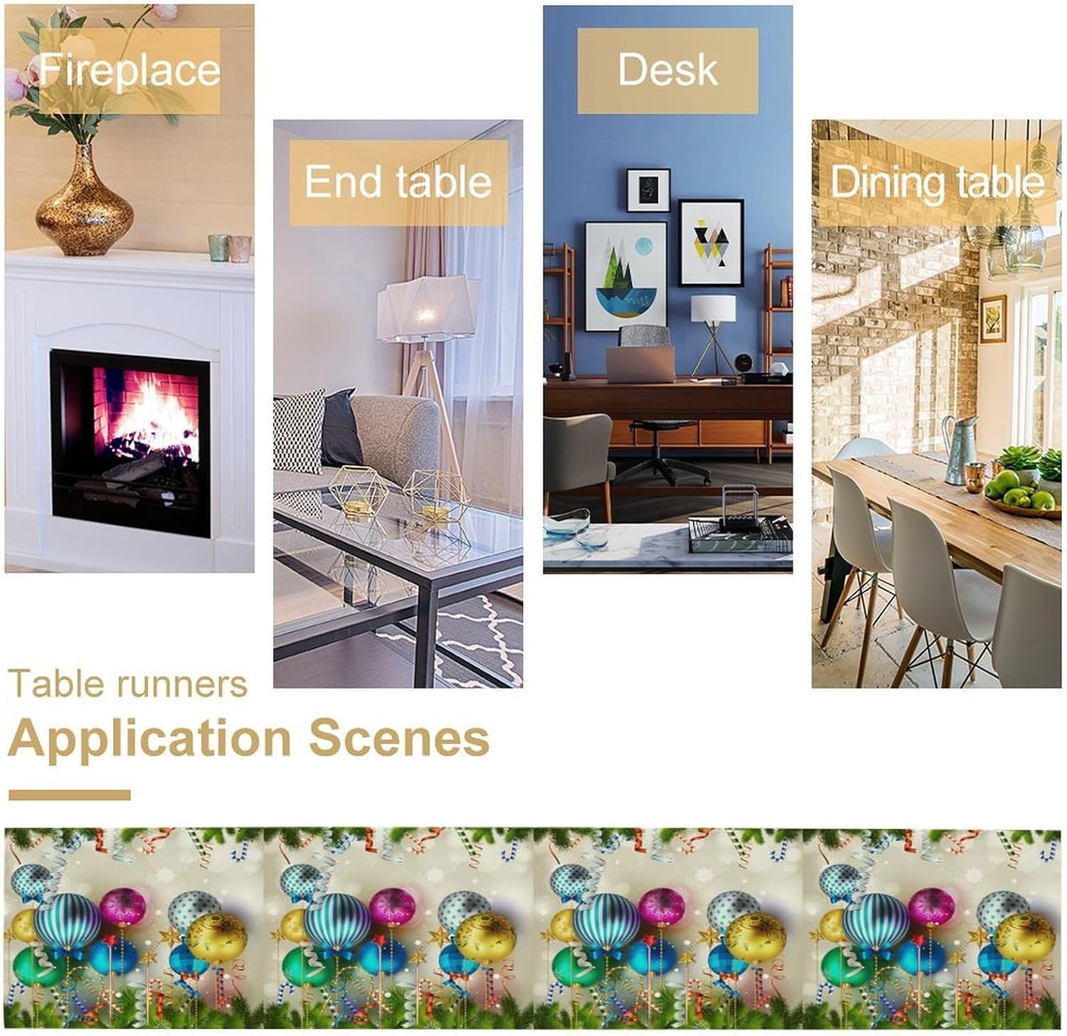 Christmas Table Runner,Colorful Balls Xmas Tree Snowflake Pattern Print Tablecloth Burlap for Hotel Indoors Outdoor Dining Room Kitchen Home Decor,W13X L60 in