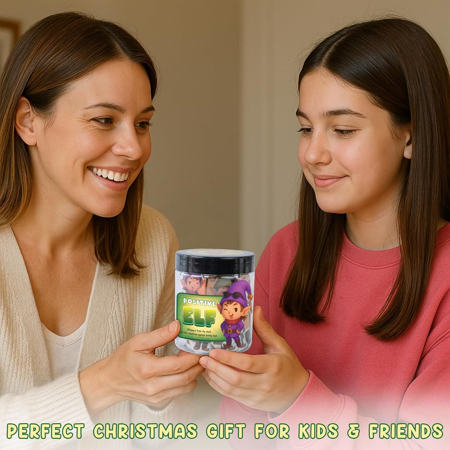 • 🎁 The Ultimate Feel-Good Gift This Positive Elf Jar is packed with 60 cheerful notes to boost joy, ease stress & bring laughs—perfect christmas gifts for teens and women who need a holiday pick-me-up. Whether you’re looking for stocking stuffers for teen girls or stocking stuffers for women, this positive Elf jar will brighten anyone’s day.