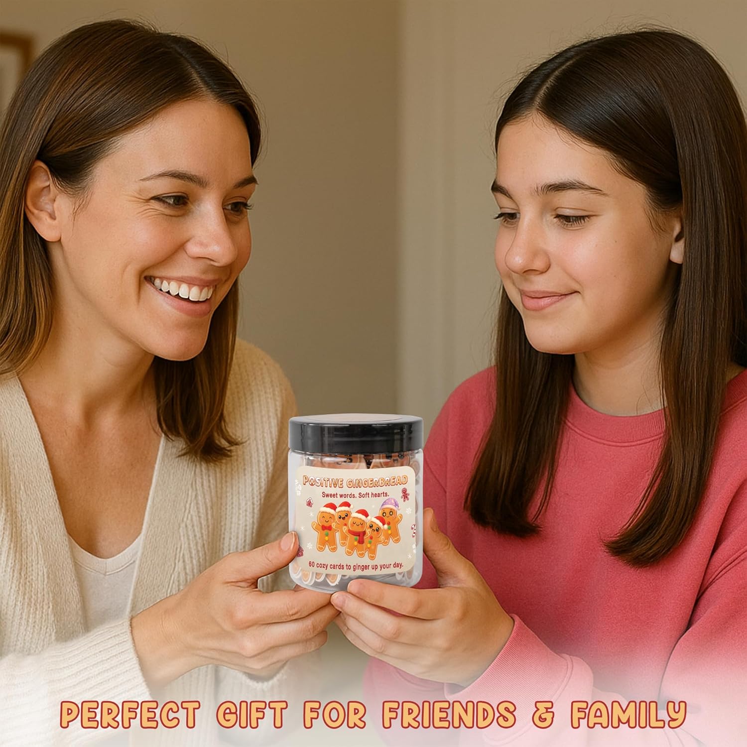 • 🎁 The Ultimate Feel-Good Gift This Positive Gingerbread Jar is packed with 60 cheerful notes to boost joy, ease stress & bring laughs—perfect christmas gifts for teens and women who need a holiday pick-me-up. Whether you’re looking for stocking stuffers for teen girls or stocking stuffers for women, this emotional support Gingerbread jar will brighten anyone’s day.