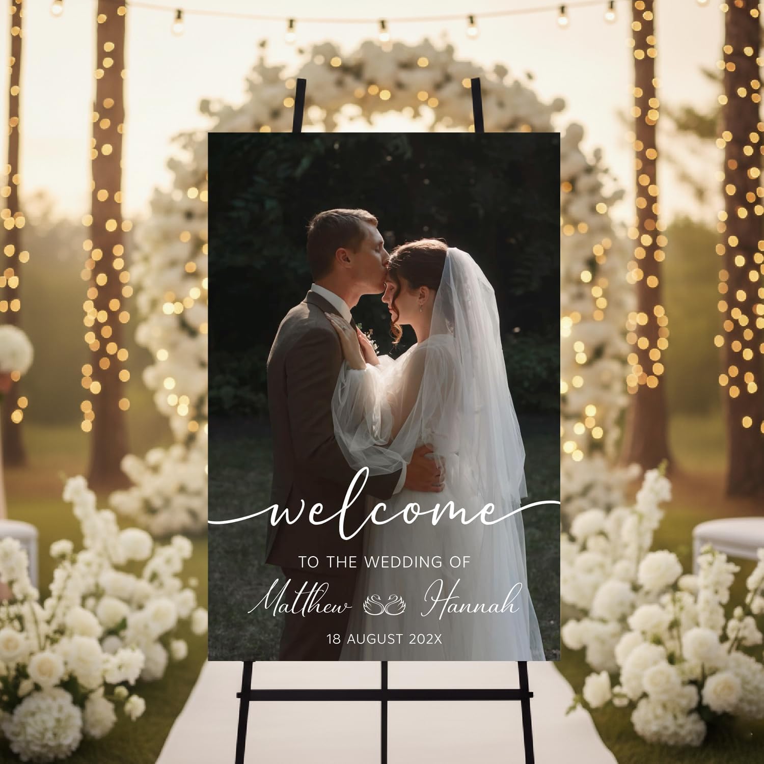 Personalized Wedding Photo Acrylic Welcome Sign – Custom Picture Board with Bride & Groom Names, Elegant Acrylic Wedding Reception Entrance or Ceremony Decoration, Indoor & Outdoor Keepsake Gift #14