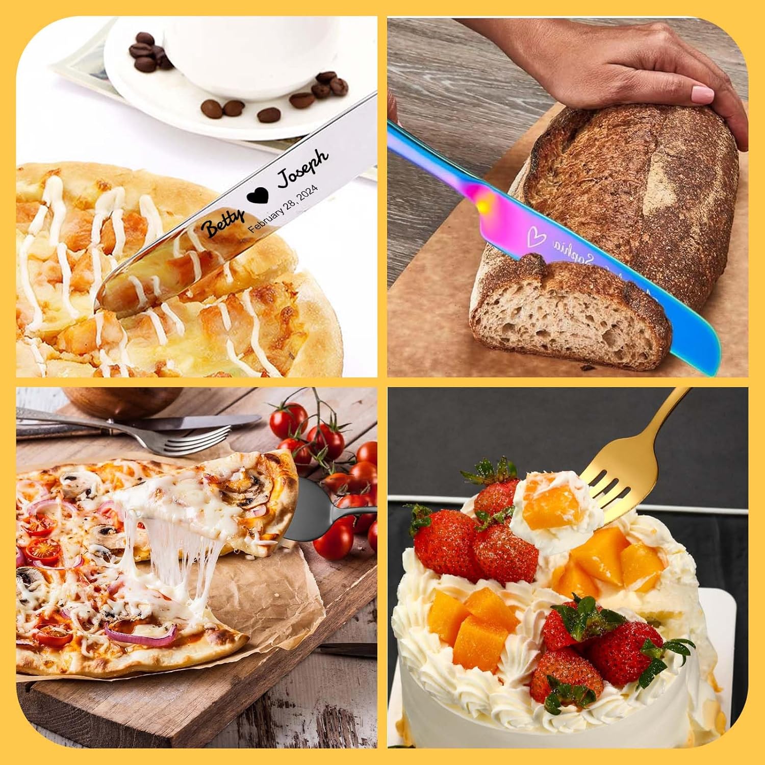 • Personalized Cake Server and Knife Set: Our Wedding Knife and Cake Server Set comes with 2 pieces, a cake knife, a cake server. It can be engraved with your names and date or your favorite symbol. The classic style and elegant engraved text will add unique romance and elegance to weddings, anniversaries or parties, creating wonderful memories.