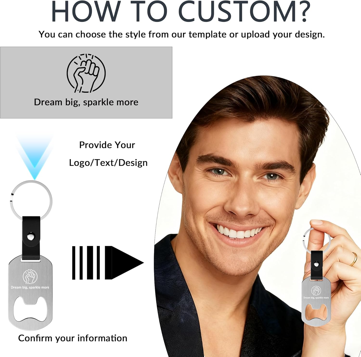 • COMPACT & PORTABLE: With its compact size and lightweight design, this personalized keychian bottle opener easily fits in your pocket, bag, or keyring. It’s a convenient tool to have on hand for impromptu drinks or everyday key organization.