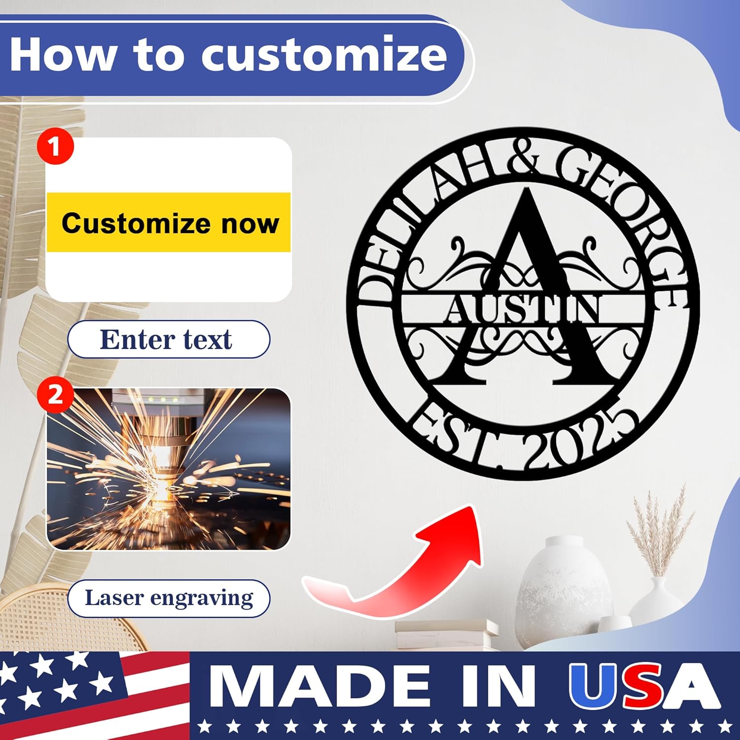• CUSTOM MONOGRAM METAL SIGNS: Our metal signs are made in the USA, ship quickly. We offer a variety of designs and sizes to choose from. You can customize your name, last name, and anniversary date as a home decor sign, living room wall decor sign, or wedding sign. It is not only the perfect home decoration, but also an excellent way to showcase beautiful memories.