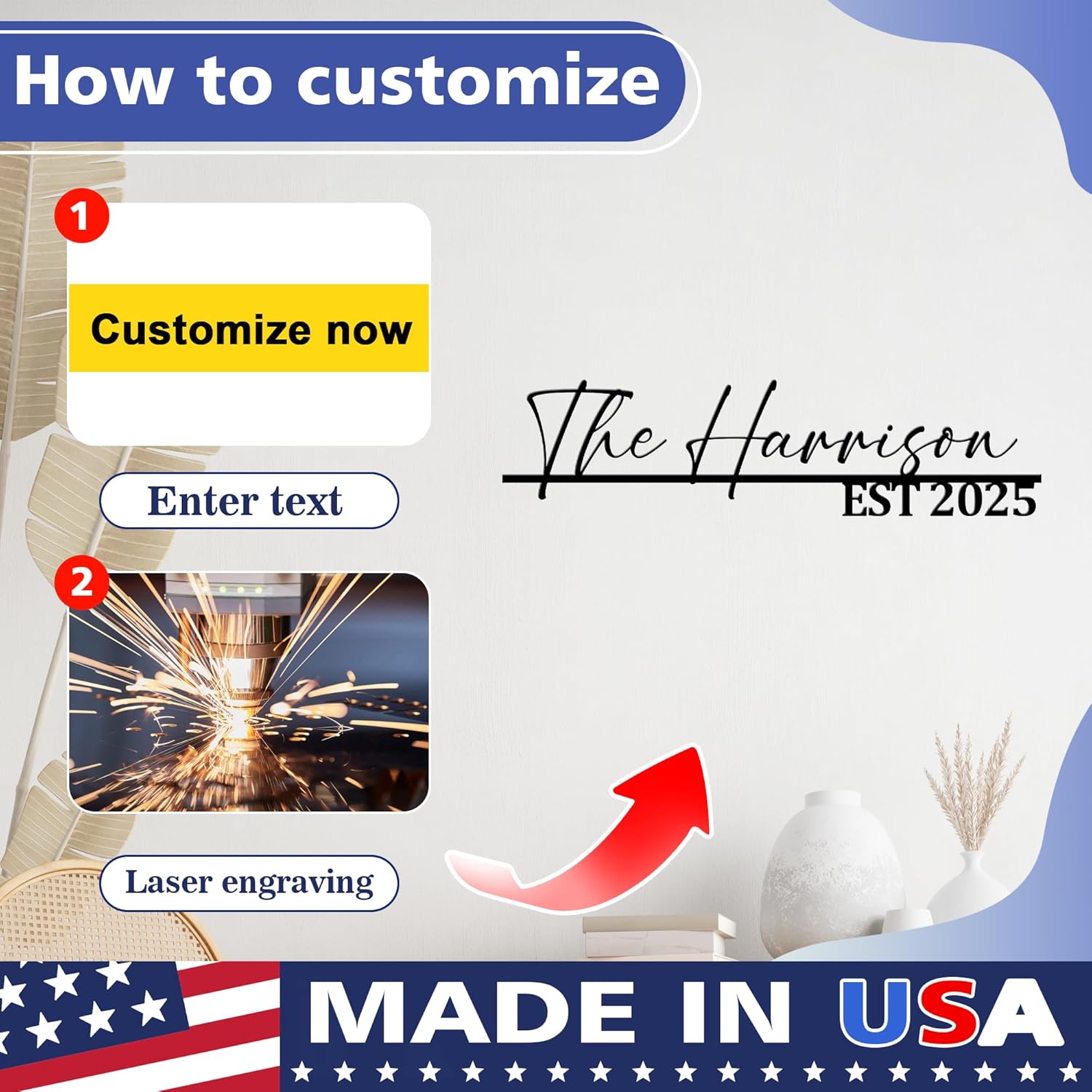 • CUSTOM MONOGRAM METAL SIGNS: Our metal signs are made in the USA, ship quickly. We offer a variety of designs and sizes to choose from. You can customize your name, last name, and anniversary date as a home decor sign, living room wall decor sign, or wedding sign. It is not only the perfect home decoration, but also an excellent way to showcase beautiful memories.