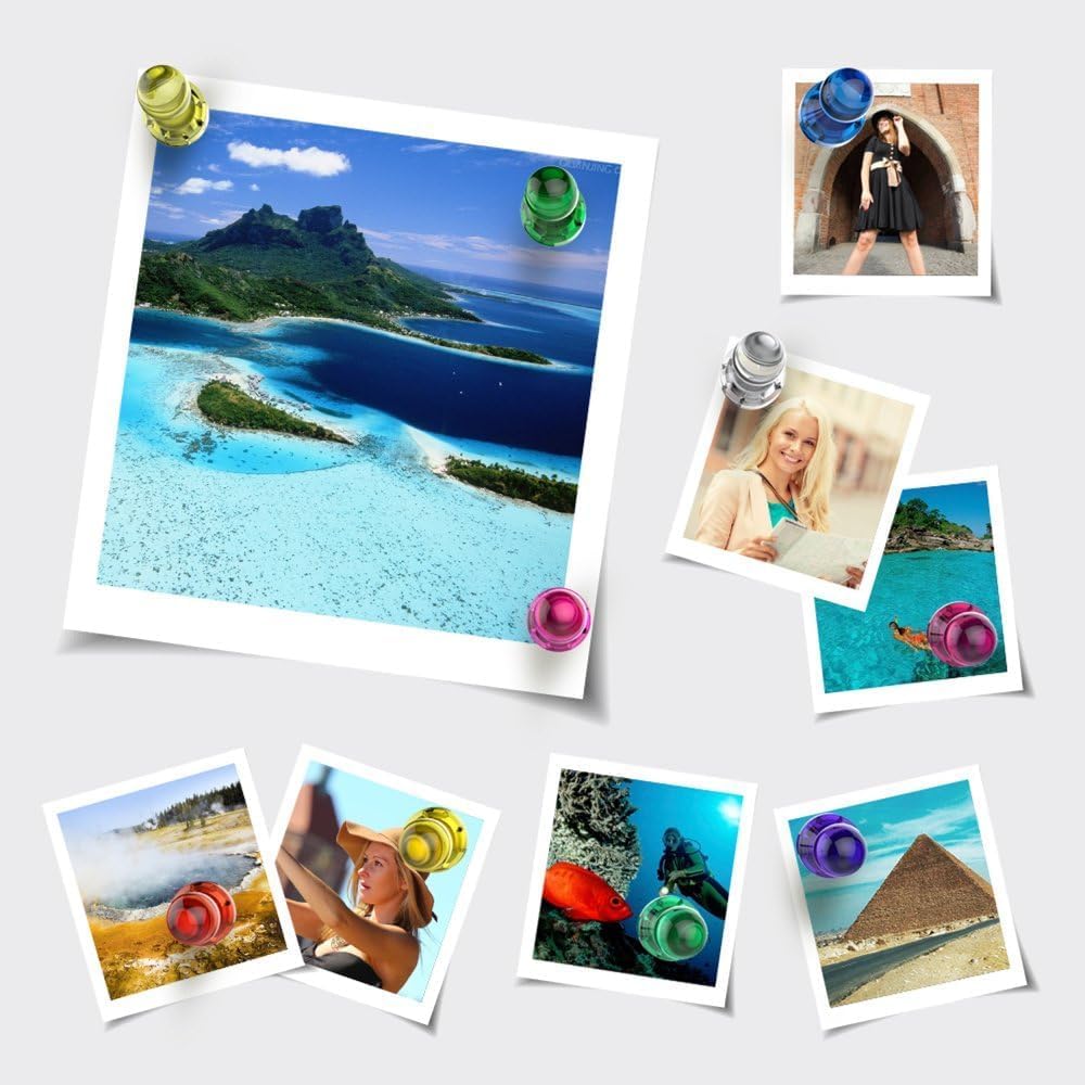 • SMALL STRONG MAGNETS: Each powerful magnet holds up to 11 sheets of paper on any metallic surface. No more sliding papers with cheap magnets. These push pin magnets are tiny too so they won't cover up exact things you want to display.