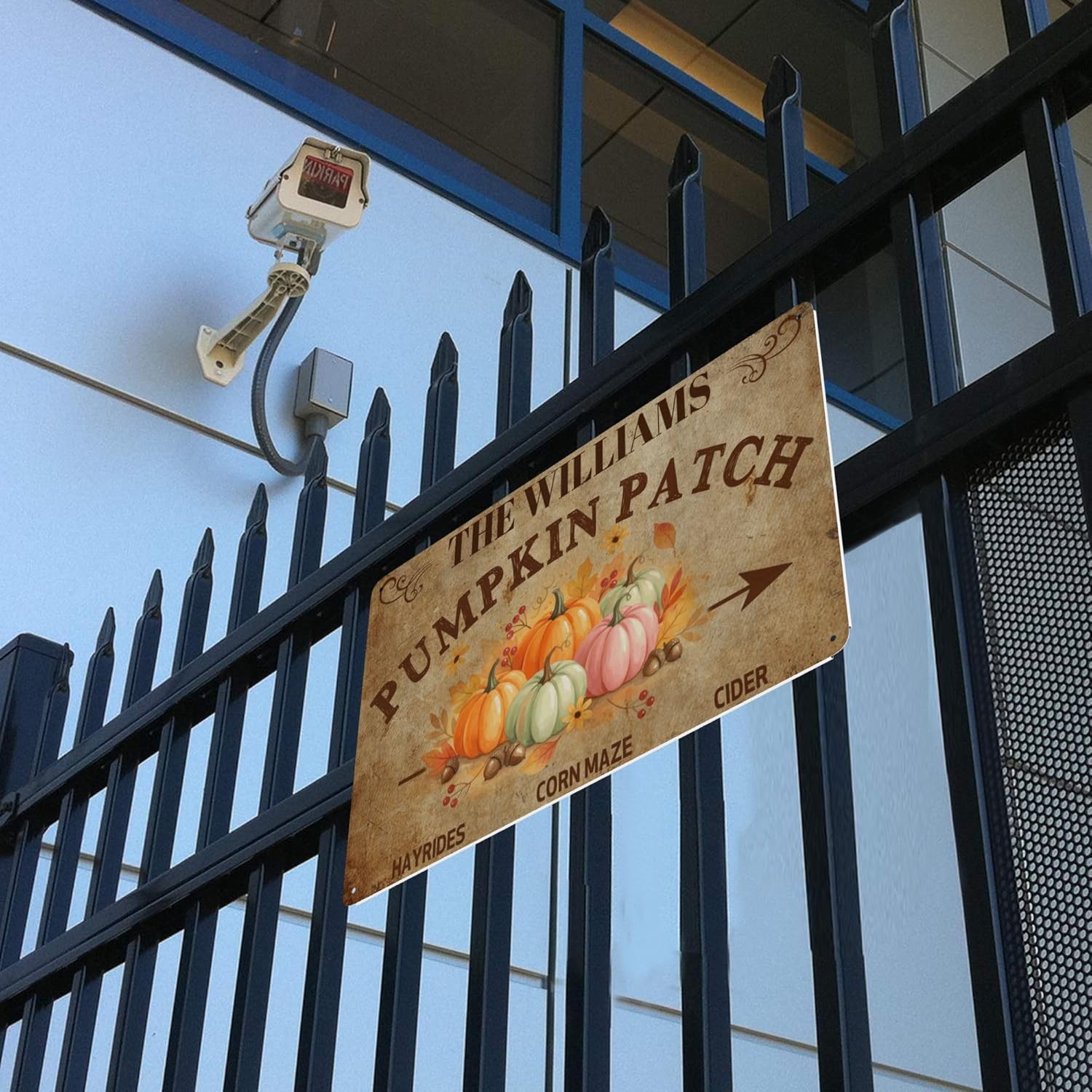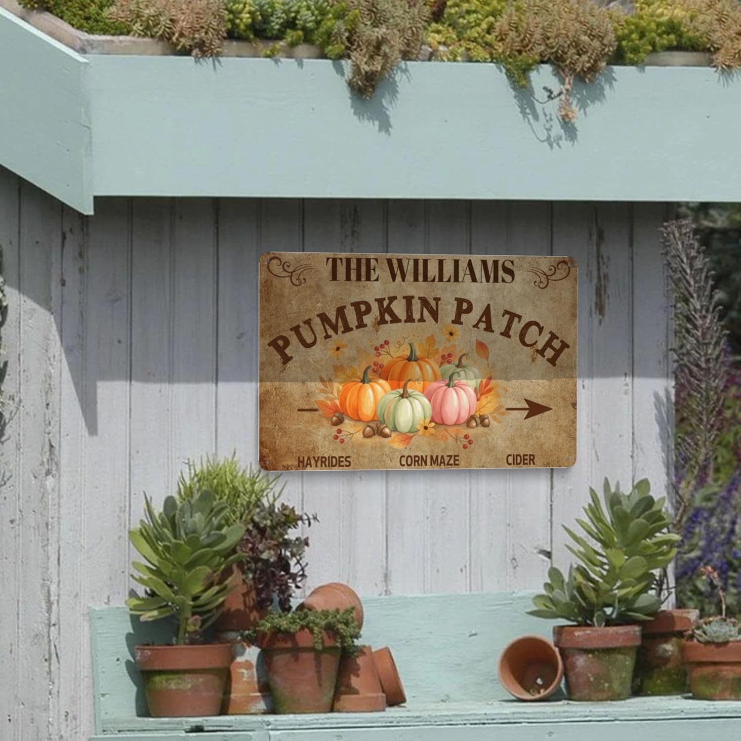 Personalized Halloween Farm Fresh Pumpkin Metal Sign Fall Decor with Family Name Text Custom Pumpkin Patch Farm Signs for Fall Thanksgiving Garden Farmhouse Wall Decoration
